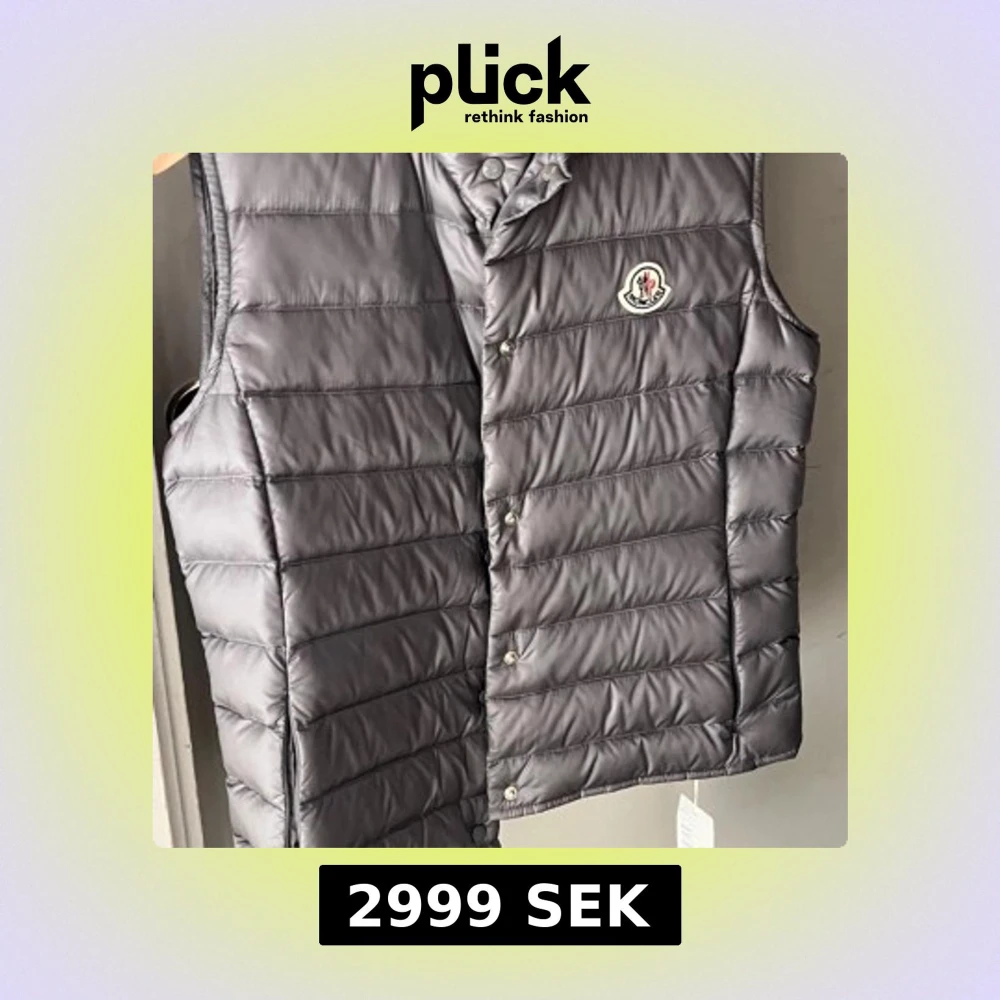 Snygg grå dunväst från Moncler i storlek S med knappar och ett stilrent märke på bröstet. Dustbag ingår. Knappt använd, i toppskick!