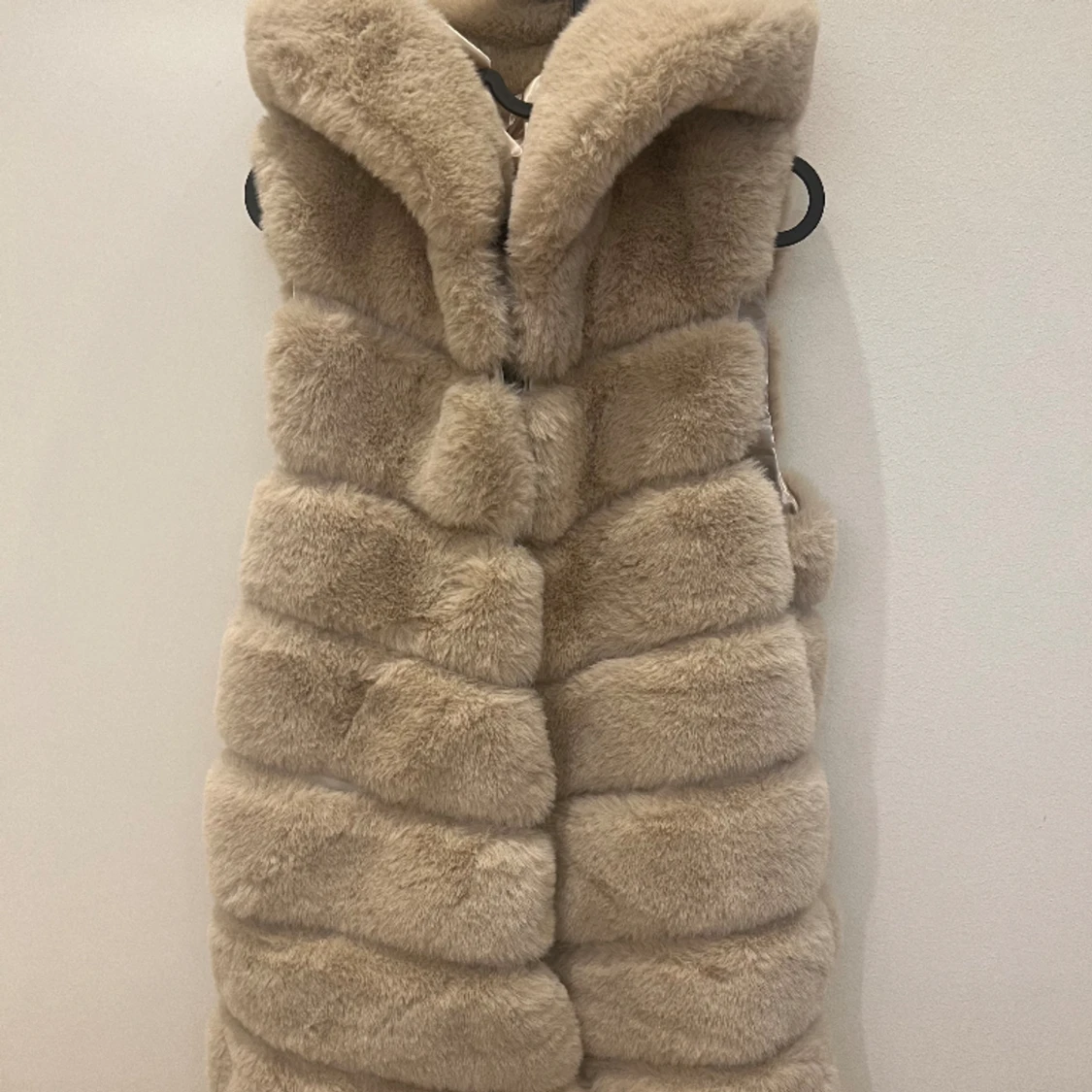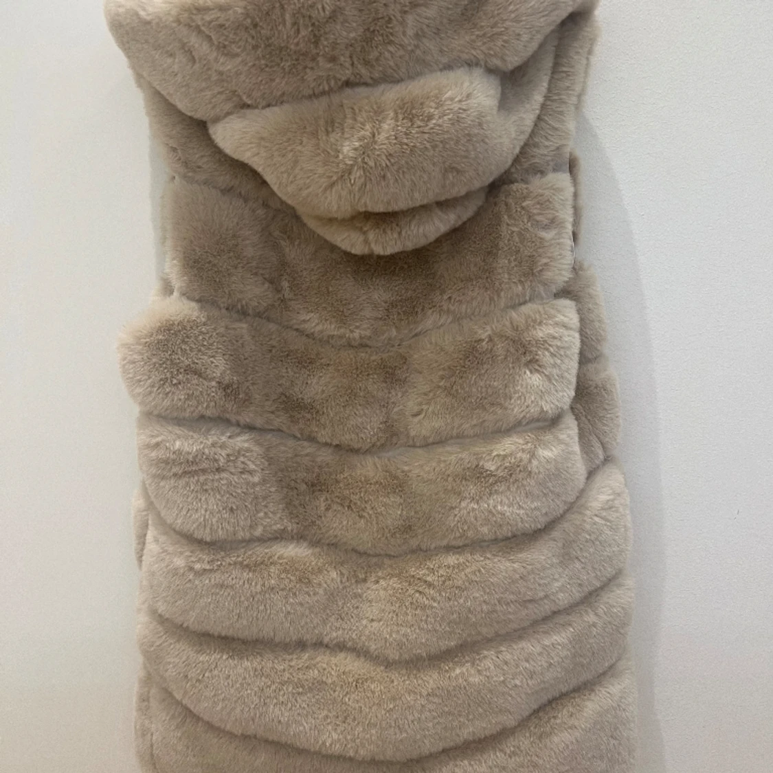Beige lång väst med mycket mjukt päls. Nyskick. Passar XS-M. Perfekt till både vår och höst.