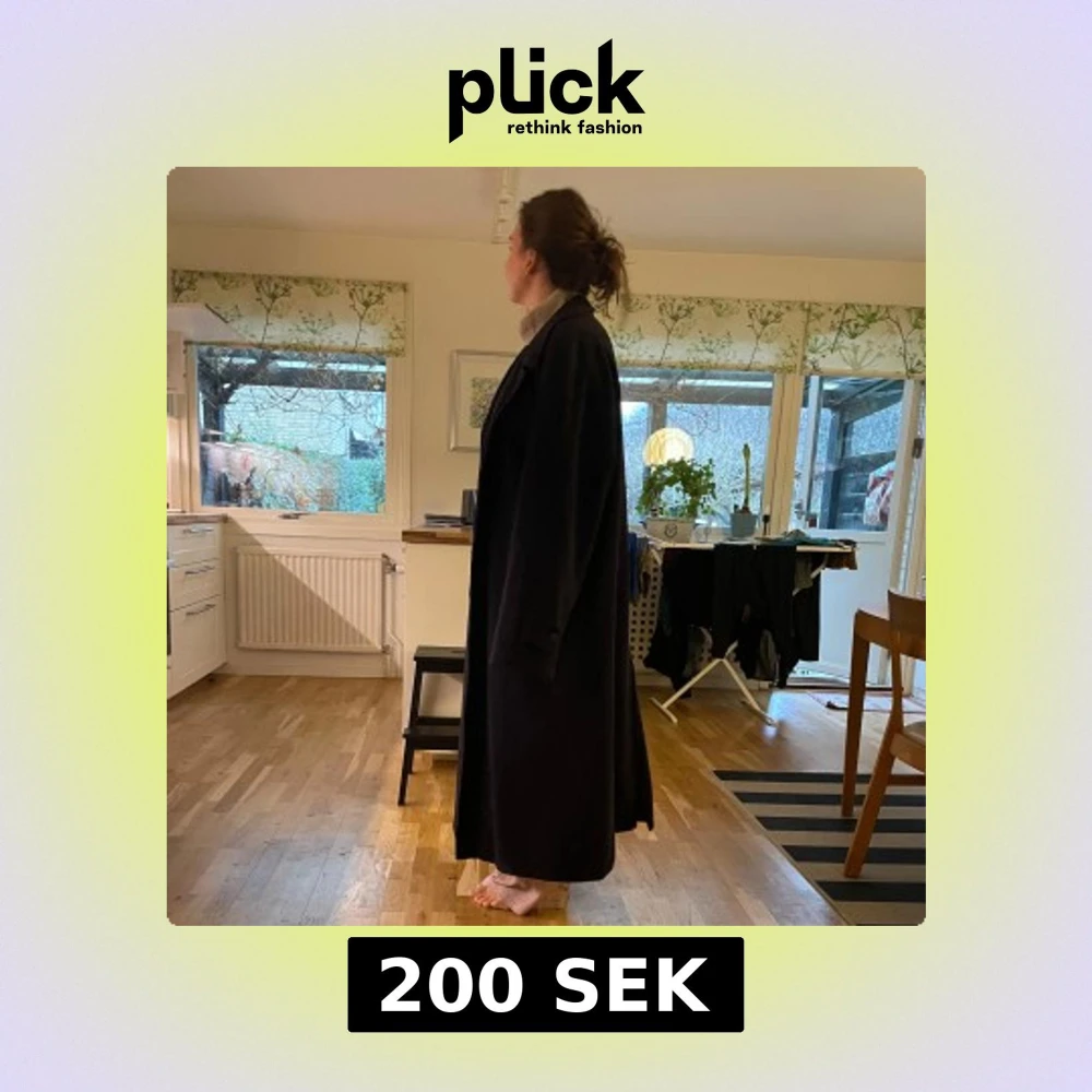Elegant svart lång kappa med klassisk design. Perfekt för kyligare dagar med sin stilrena look och långa ärmar. Passar bra över både vardags- och festkläder.