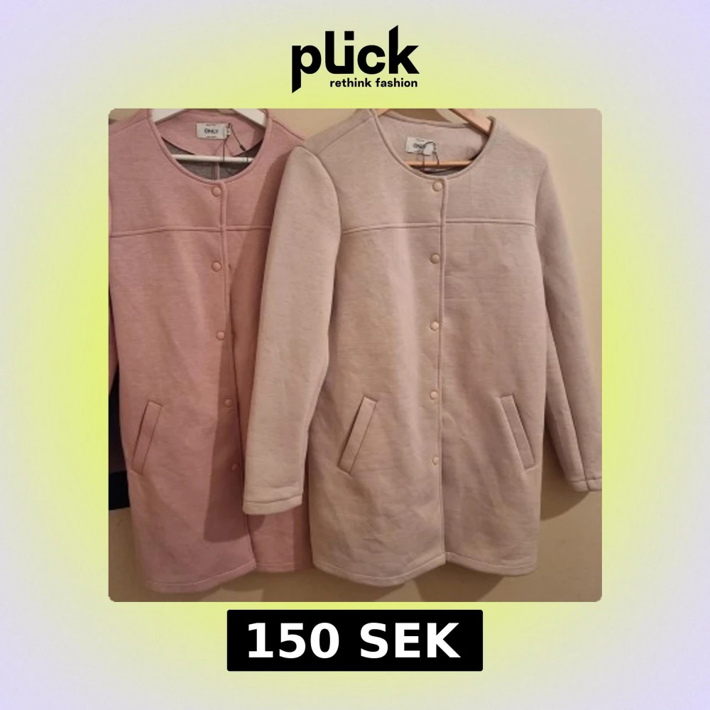 Säljer en stilren långärmad kappa från ONLY. Finns i tre färger: rosa, beige och svart kappan har en rund halsringning och knäpps med knappar framtill. Perfekt för vår och höst!