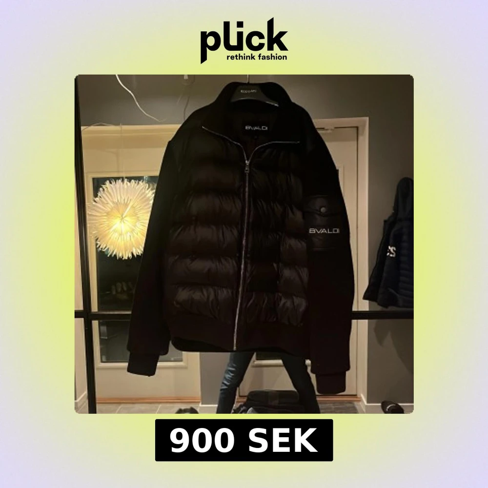 Snygg svart pufferjacka från Bvaldi med dragkedja och långärmad design. Jackan har en stilren look med märkets logga på ärmen. Perfekt för kyligare dagar.