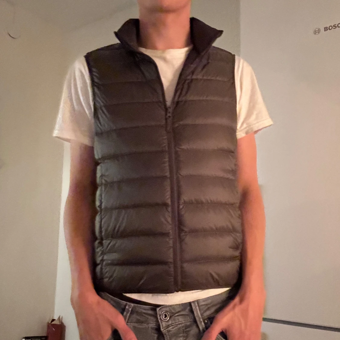 Säljer en stilren svart dunväst från Uniqlo. Västen är ultralätt och har en praktisk dragkedja framtill. Perfekt för lager-på-lager under kyliga dagar.