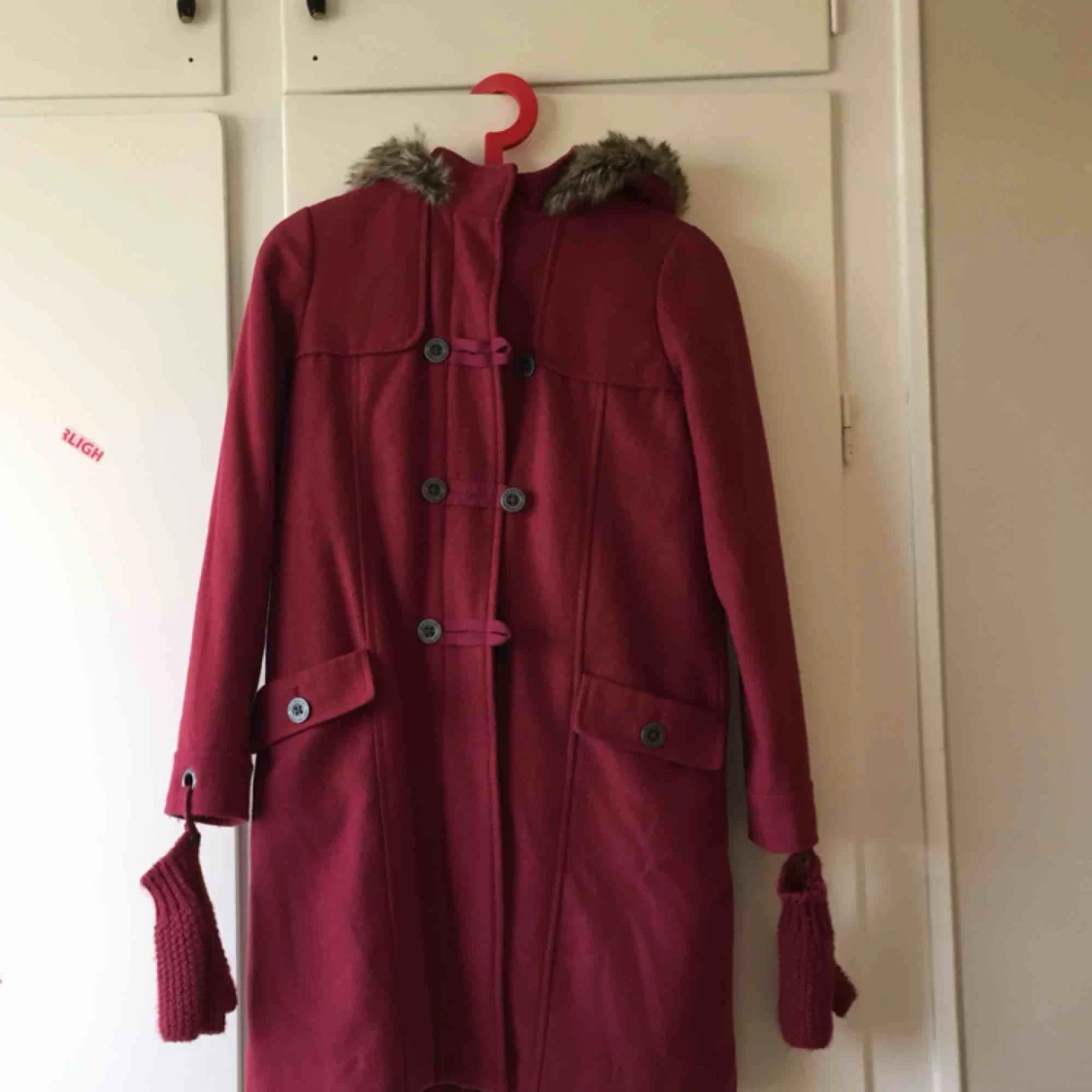Super fin och charmig vinter kappa med dragkedja och knappar. Fodrad med jättefint tyg, luvan är fejk päls och har söta små handleds värmare som går att knäppa av. Använd ett fåtal gånger och är i oerhört gott skick. Från LaRedoute av Verbaudet.