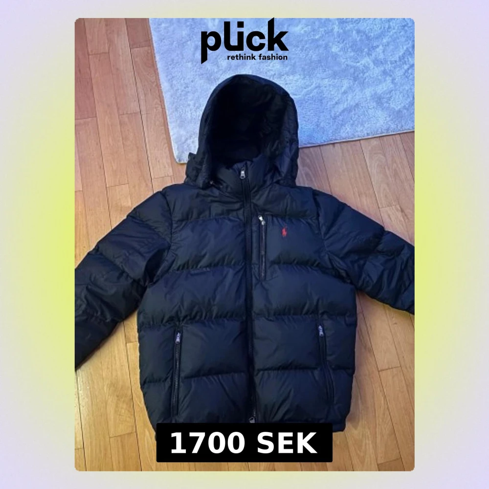 Svart pufferjacka från Polo Ralph Lauren med huva och flera dragkedjeförsedda fickor. Jackan har det klassiska röda Polo-logot broderat på bröstet och quiltad design. Perfekt för kalla dagar med sin tjocka och fluffiga look, storlek L