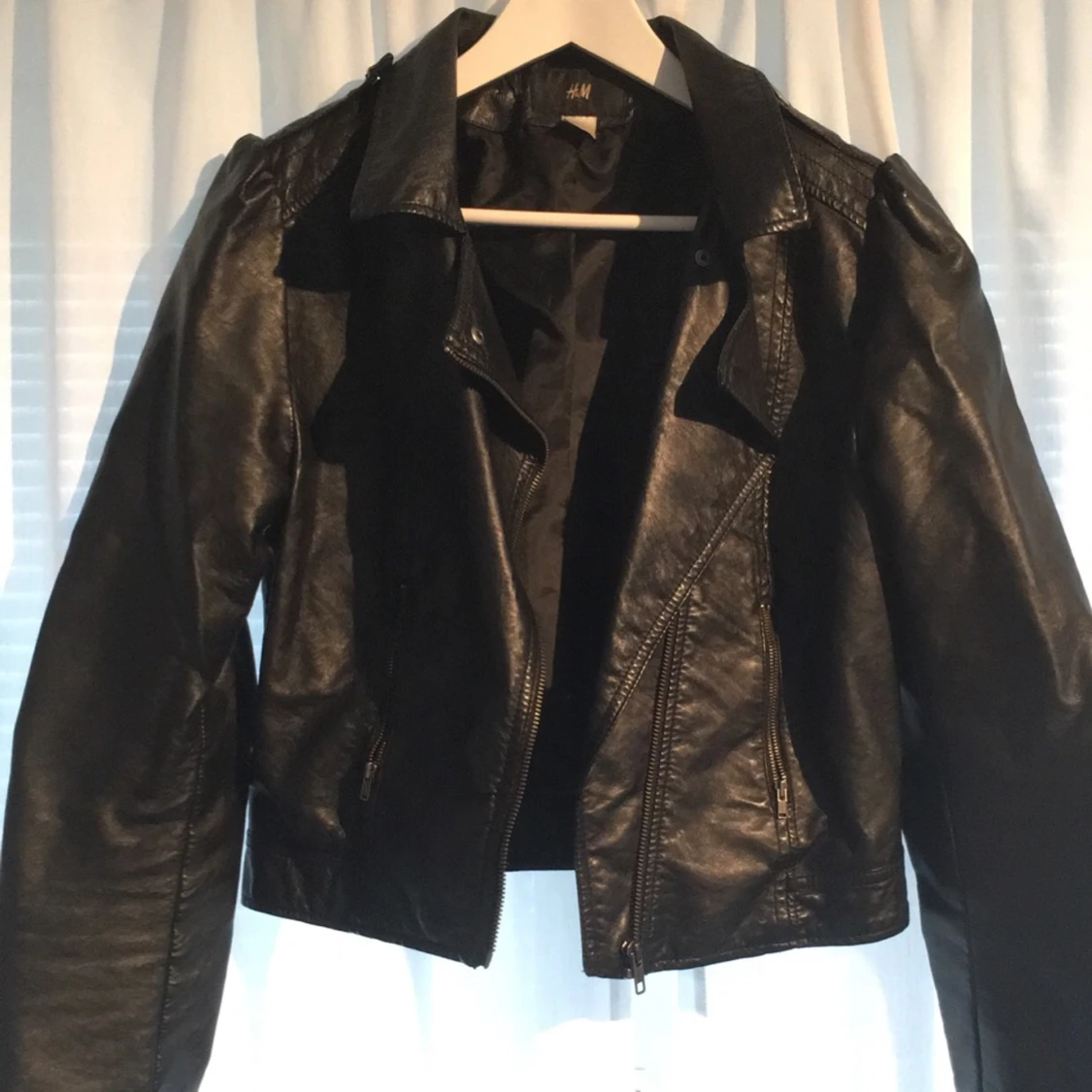 Sparsamt använd svart skinnjacka från hm i storlek 44. Vid frågor vänligen skicka meddelande. Köparen står för frakt. Plagget skickas när pengarna är på kontot. Tar emot swish!