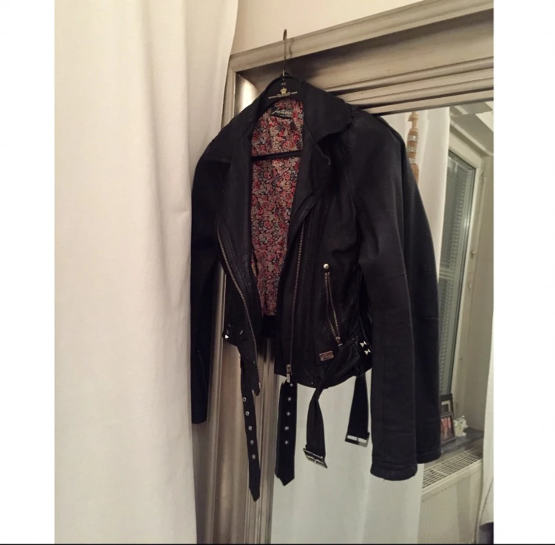 Snygg & tuff skinnjacka från " Jofama by Kenza ". Bältets form har blivit lite sämre än den originella versionen, men det ser ändå snyggare ut när det hänger, och då märker man inte alls av denna " defekt ".