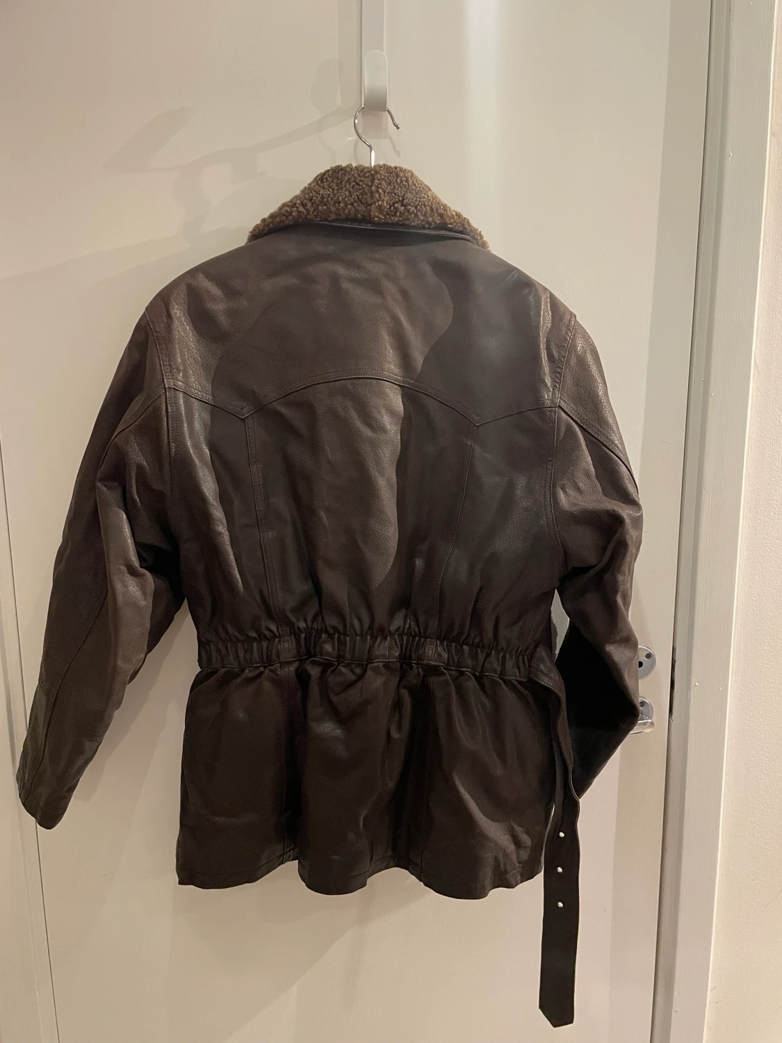 En skinnjacka med skärp. Den har varit använd men i väldigt bra skick. Den har legat packad i en vacuum påse för att kvaliten på jackan inte skulle förstöras.