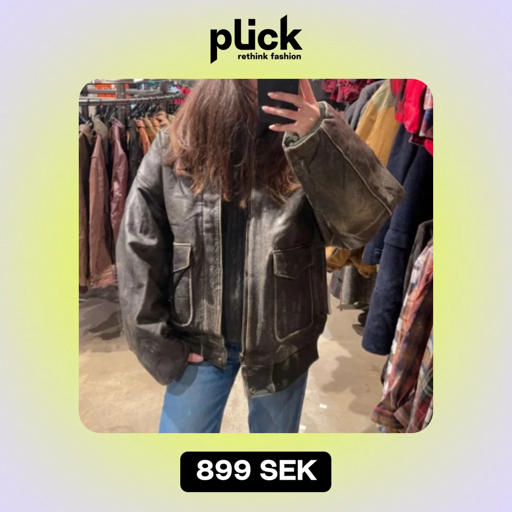 En snygg och klassisk skinnjacka med en avslappnad passform. Jackan har två fickor framtill och en dragkedja framtill. Den har en snygg vintage-look och är perfekt för att addera en touch av stil till din garderob. Köpt för 1 299kr