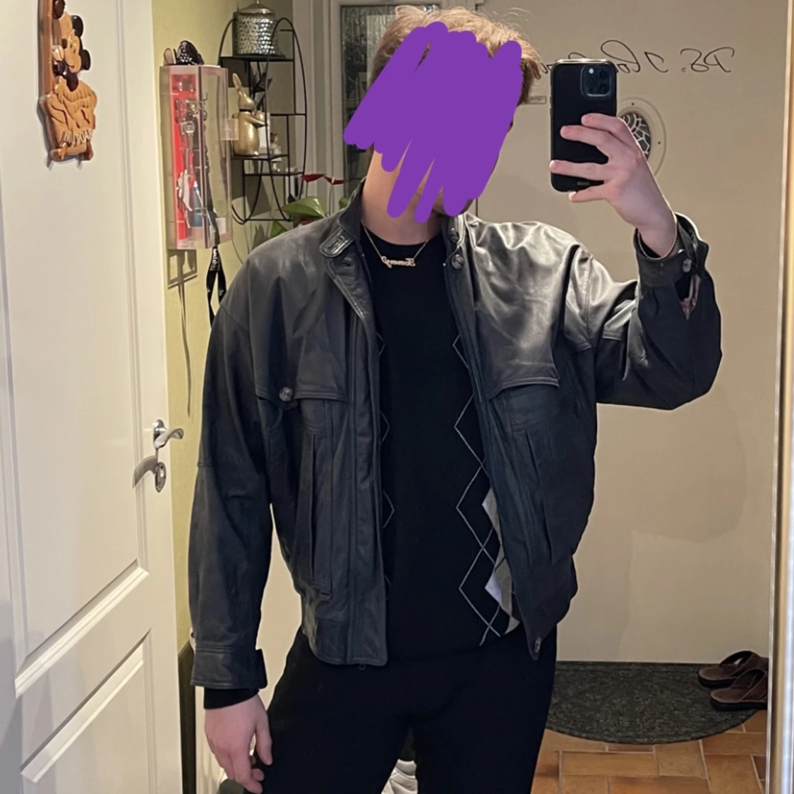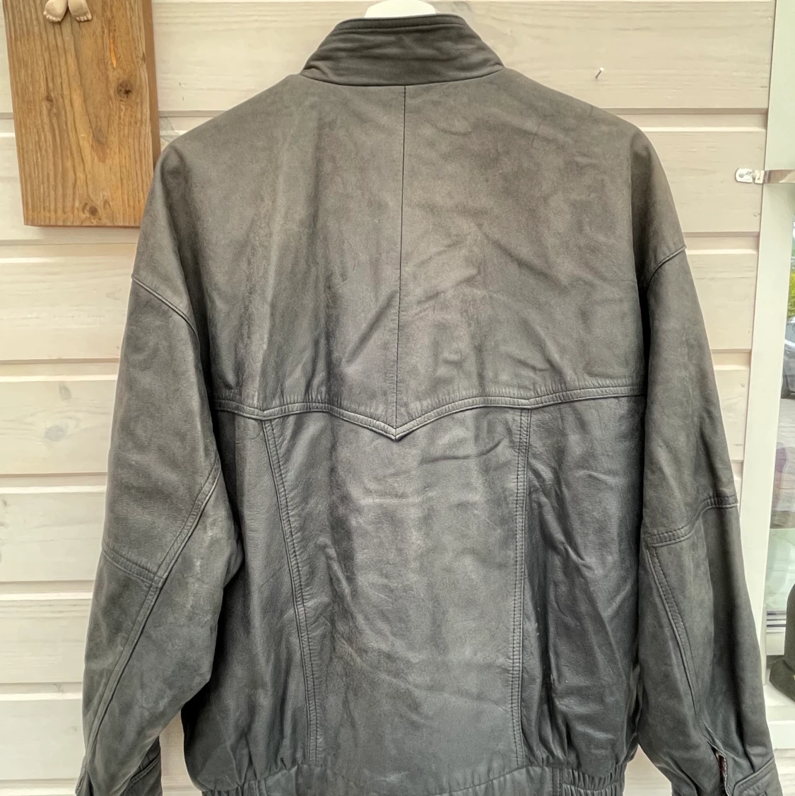 En dusty gray/black skinnjacka i äkta läder i väldigt bra skick! Pappas gamla från 80-talet och väldigt väl behandlad. Fint skick med en bra vintage feeling:)