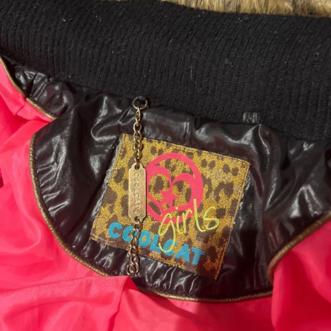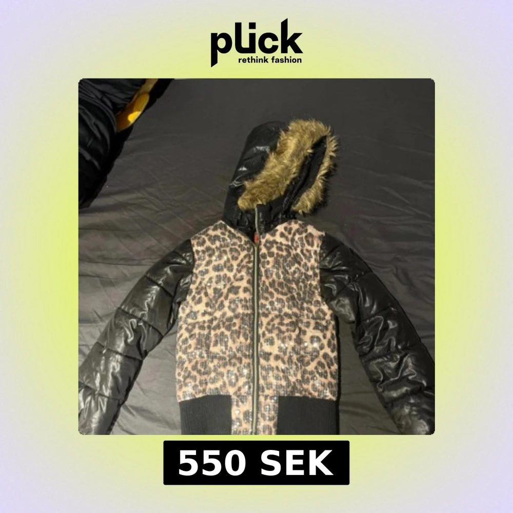 Säljer en cool leopardmönstrad jacka från Coolcat med svarta quiltade ärmar och huva med fuskpäls. I bra skick, passar. XXS-S