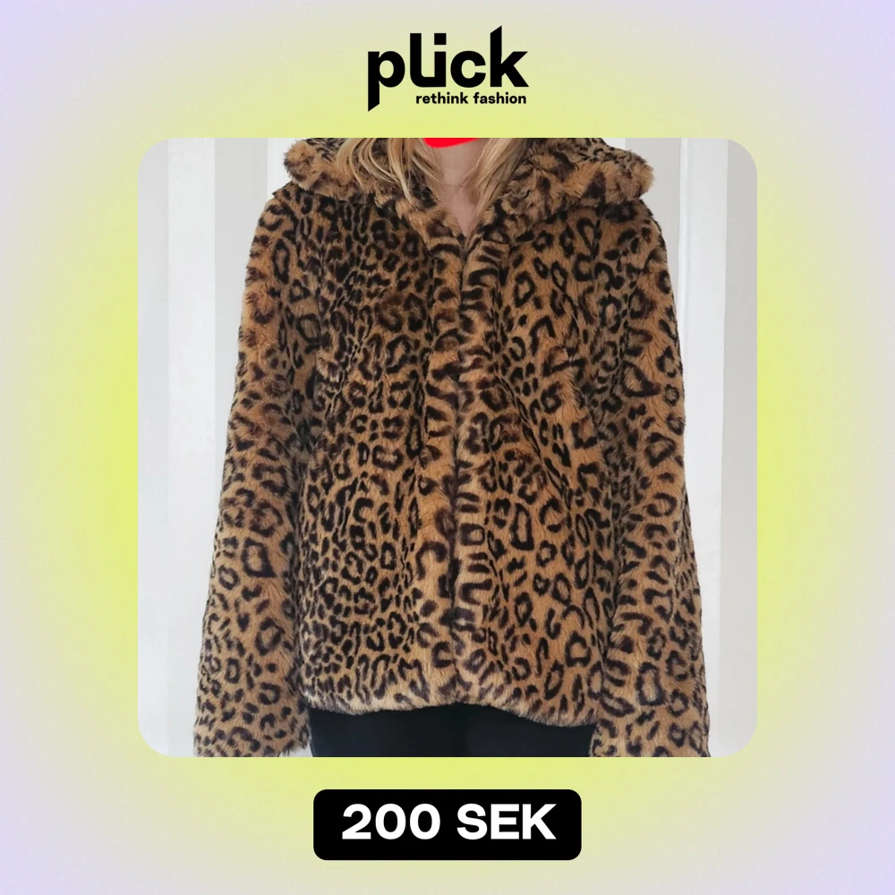 Säljer en supercool leopardmönstrad pälsjacka i syntetmaterial. Den är perfekt för höst och vinter och har en mysig, oversized passform. Jackan har långa ärmar och en hög krage som håller dig varm. Perfekt för att sticka ut på festen eller bara känna sig extra glamorös i vardagen! 🐆✨