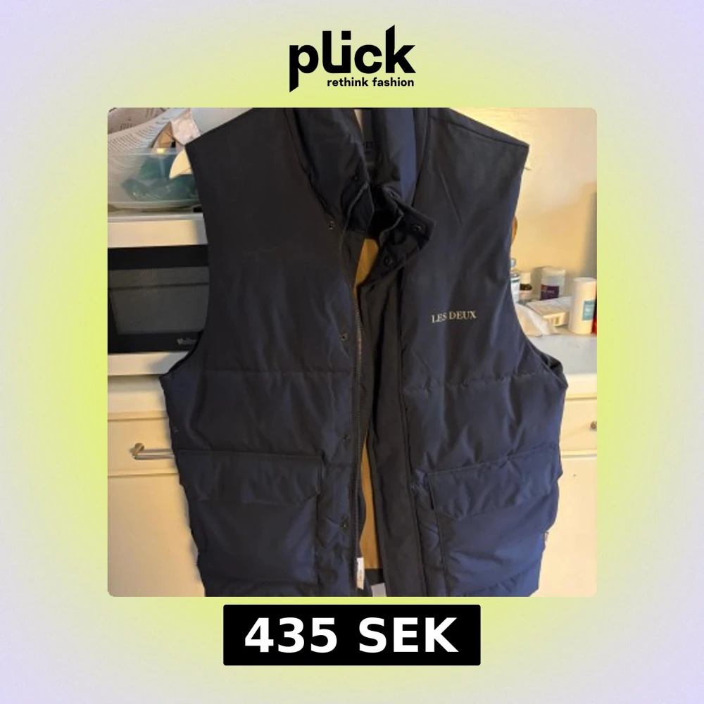 Sparsamt använd, ca 5 gånger. Snygg mörkblå dunväst från Les Deux med hög krage och diskret logga på bröstet. Västen har stora fickor framtill, dragkedja och knappar. Insidan är beige och har en innerficka. Perfekt för lager-på-lager under kyliga dagar.