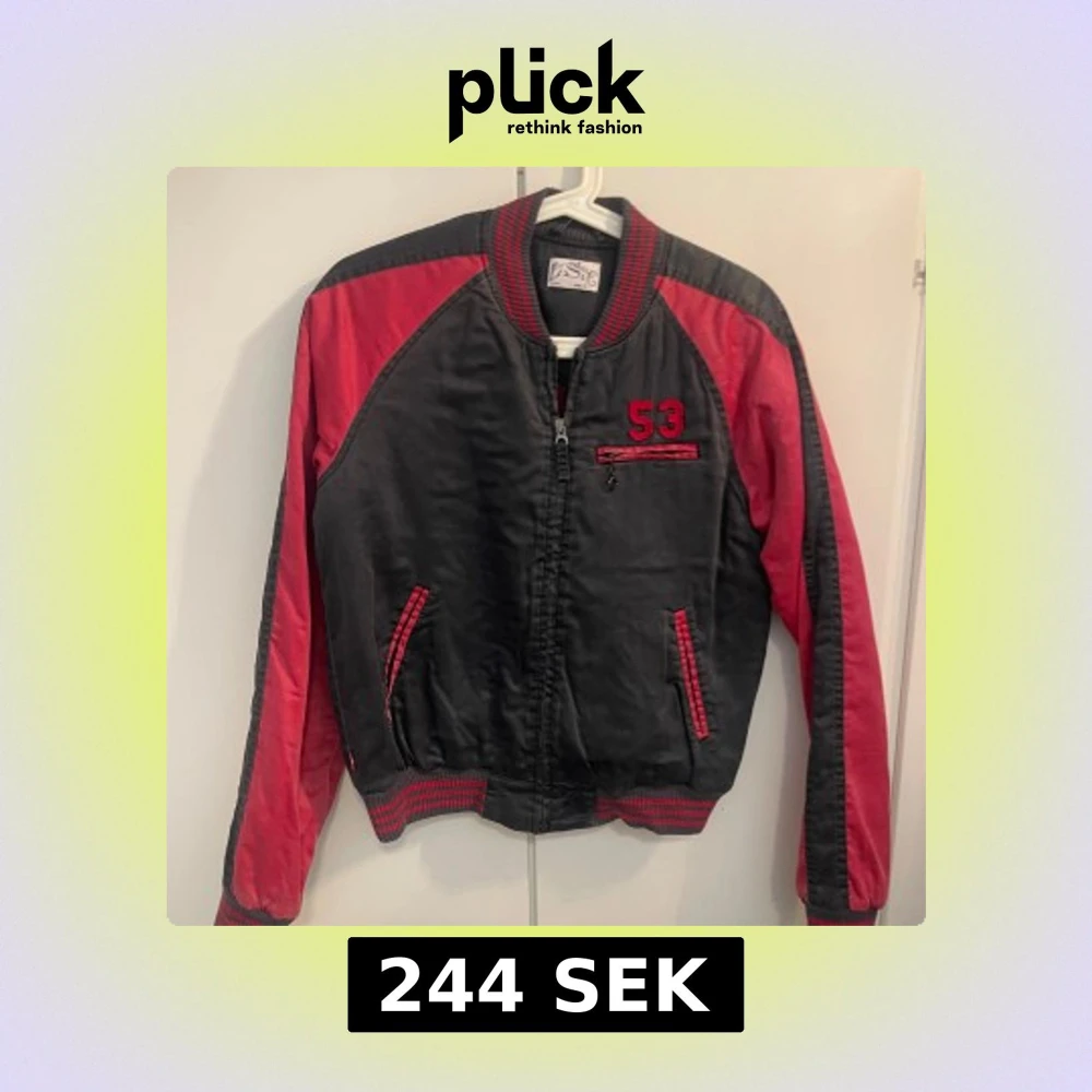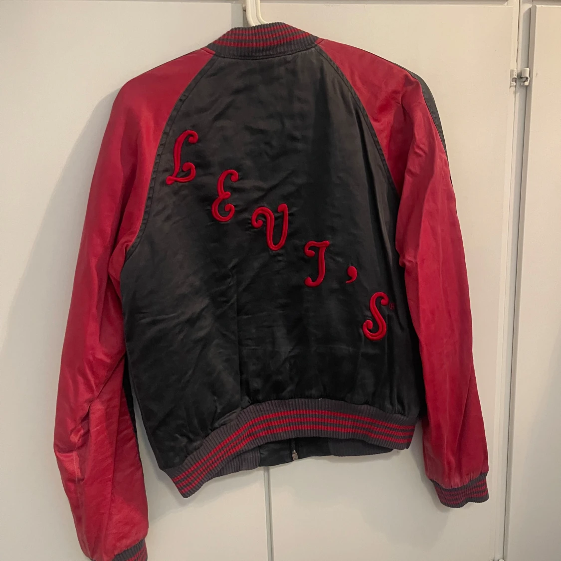 Snygg svart och röd bomberjacka från Levi's med broderad text på ryggen och siffran 53 framtill. Jackan har dragkedja, randiga muddar och röda detaljer på fickor och axlar. Perfekt för dig som vill sticka ut med en sportig och retro vibe.