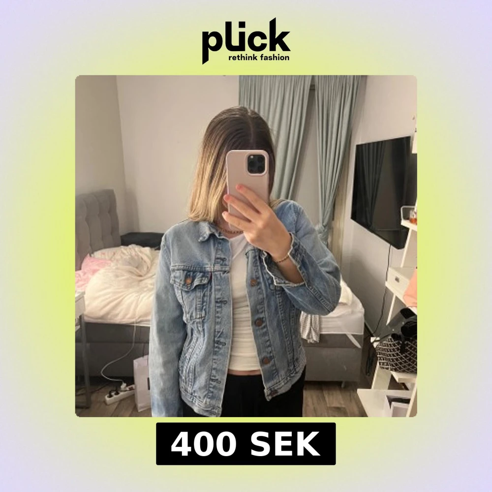 Säljer en klassisk ljusblå jeansjacka från Levi's med snygga bronsfärgade knappar och två bröstfickor med lock. Jackan har en rak passform och är tillverkad i slitstarkt denim. Perfekt att slänga över en t-shirt för en chill look.