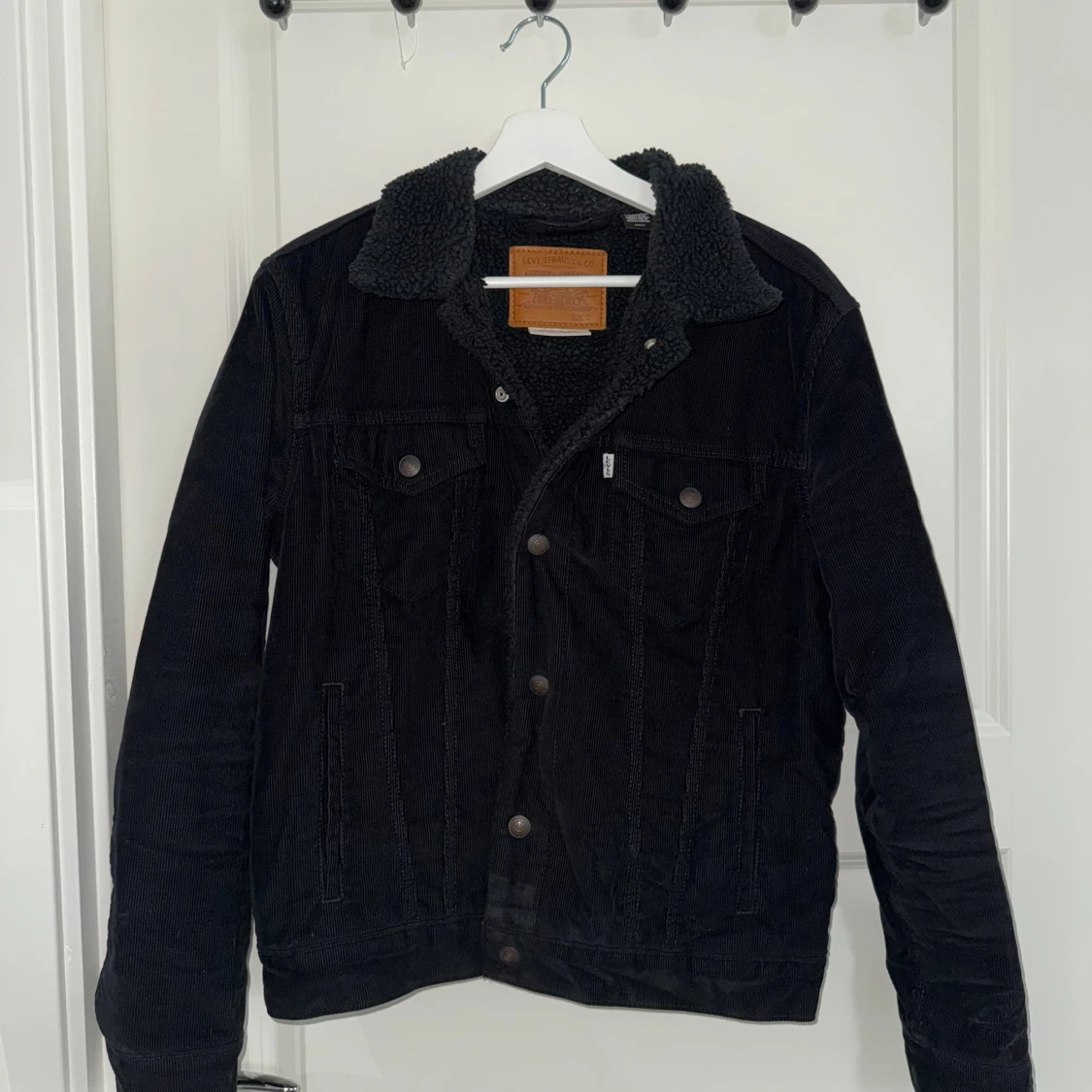 Svart jeansjacka från Levi's med teddyfoder och krage i mjuk teddy. Klassisk modell med knappar framtill, två bröstfickor med lock och två sidofickor. Jackan har en rak passform och är perfekt för kyligare dagar.
