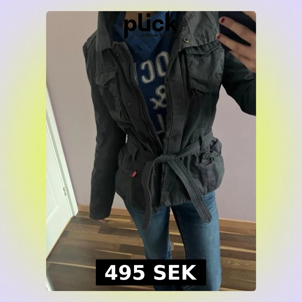 Snygg marin blå parkajacka från Levi Strauss med knytbälte i midjan och flera fickor framtill. Jackan har lång ärm och klassisk krage, perfekt för dig som vill ha en stilren och funktionell jacka till vardags. Lite tjockare så passar bra för vår och höst