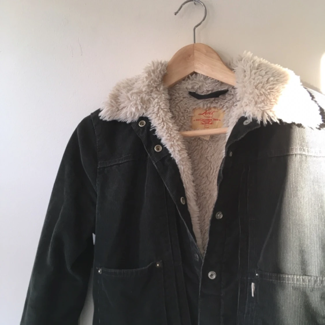 En supersnygg Levisjacka köpt i Köpenhamn. Den är kort (lite över midjan) och gjord i manchester utanpå och pälsteddy innuti!!🍁🍁🍁