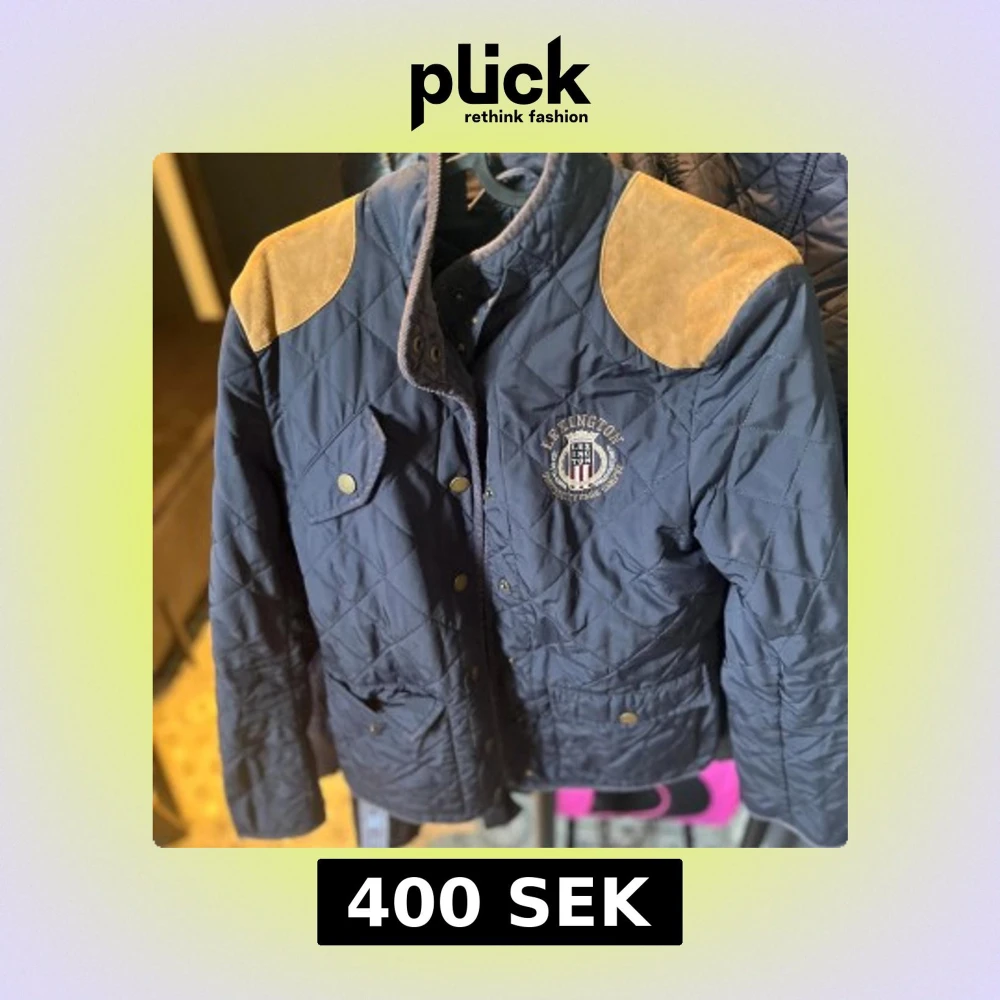 Snygg mörkblå quiltad jacka från Lexington med bruna axelpartier i mocka-look. Jackan har tryckknappar, dragkedja och två stora fickor framtill. Broderad Lexington-logga på bröstet och coola detaljer som spänne vid kragen.
