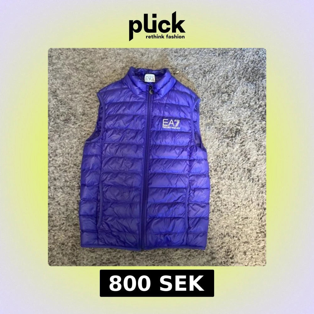 Säljer en snygg lila dunväst från EA7 Emporio Armani. Västen har en dragkedja framtill och är perfekt för kyligare dagar. Den är quiltad och har en stilren design med EA7-loggan på bröstet. Västen e köpt på mosfashion i Lanzarote/spainen