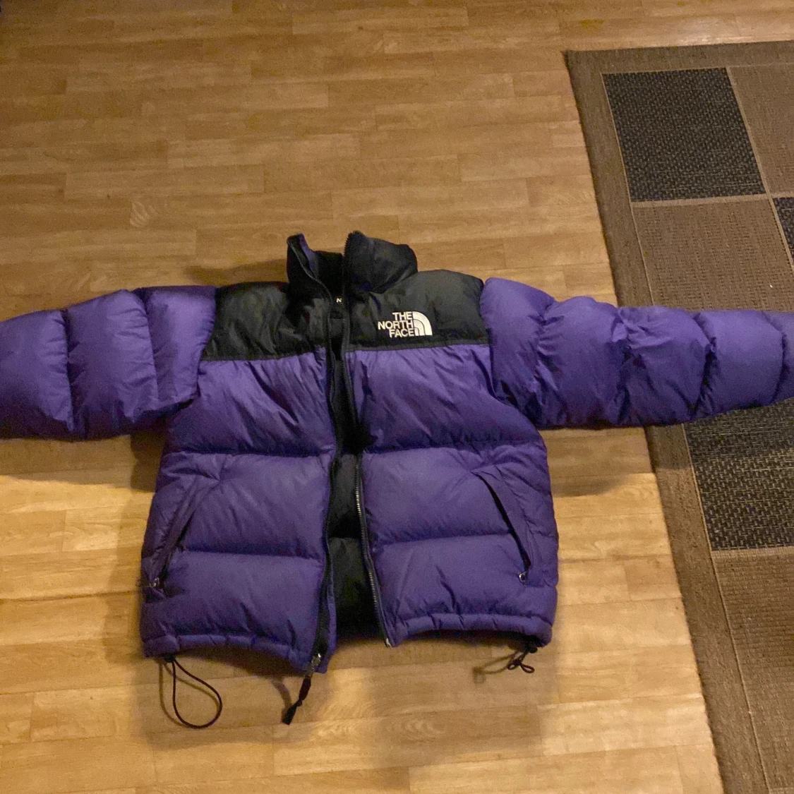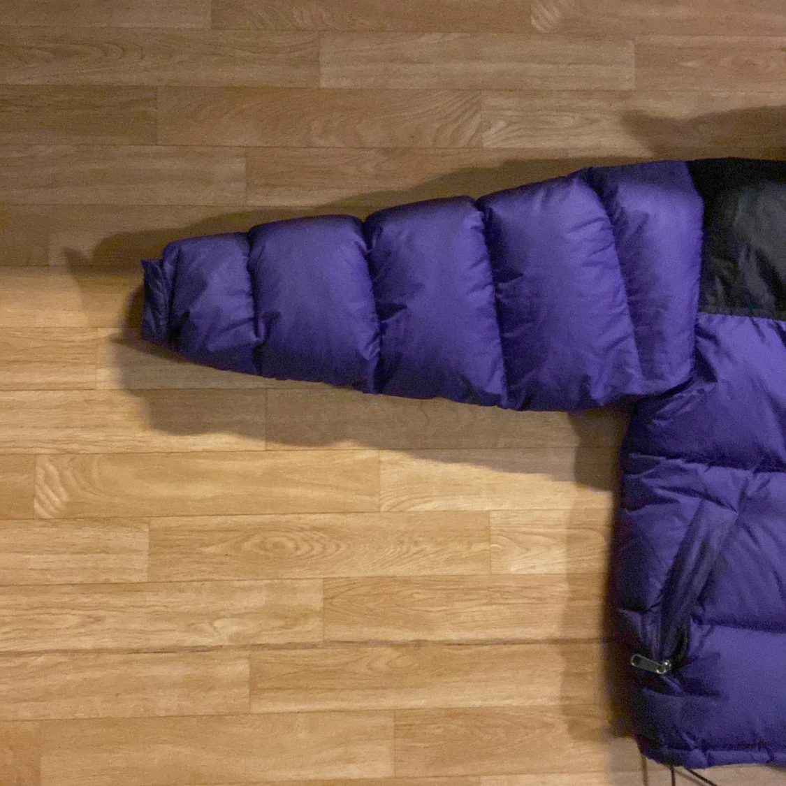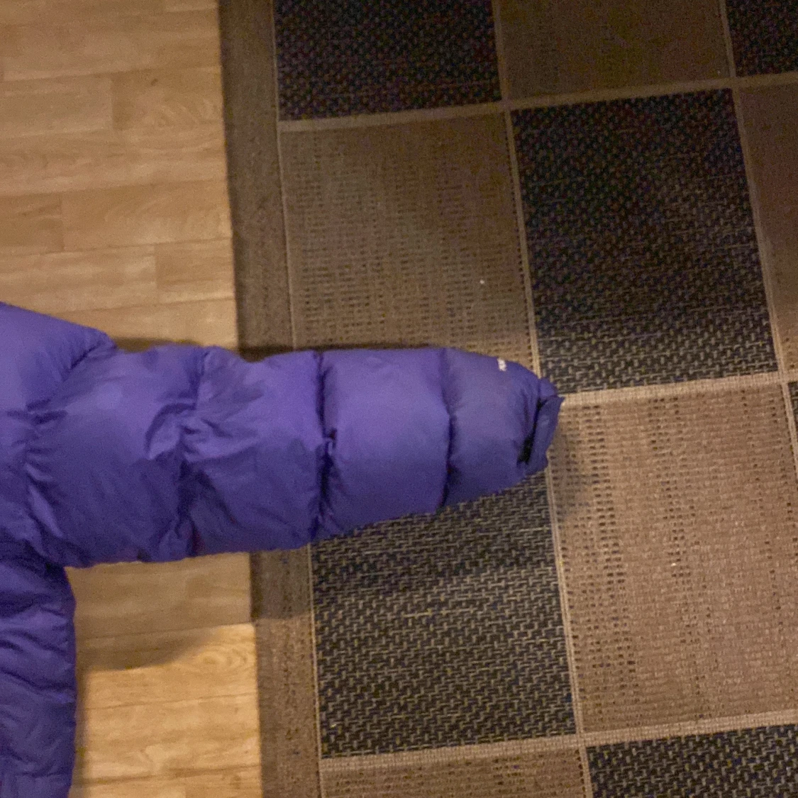 Säljer en snygg lila och svart dunjacka från The North Face. Jackan är perfekt för kalla vinterdagar med sin pufferstil och långa ärmar. Den har en dragkedja framtill och justerbara snören i nederkant för bästa passform. Perfekt för både vardag och äventyr! 💜