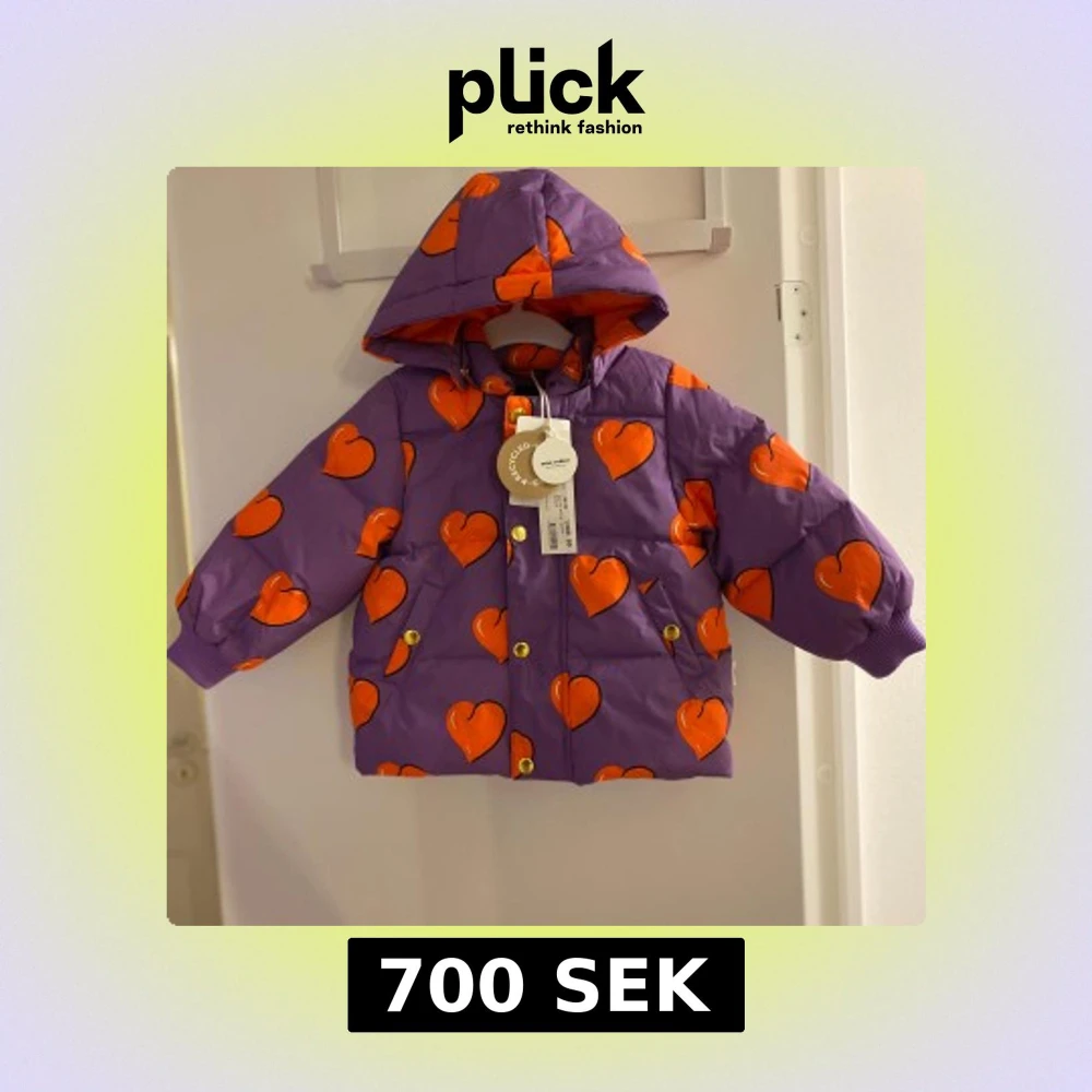 Säljer en superfin lila pufferjacka från Mini Rodini med stora orange hjärtan. Jackan har en mysig huva och stängs b knappar. Insidan är klädd i en härlig orange färg. Perfekt för att lysa upp kalla dagar! 💜🧡