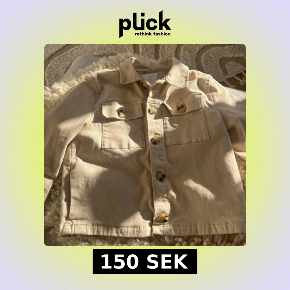 Snygg beige jeansjacka från Lindex med klassisk krage, stora bröstfickor och knappar framtill. Jackan har raka ärmar, är i storlek 164 men funkar som en xs.