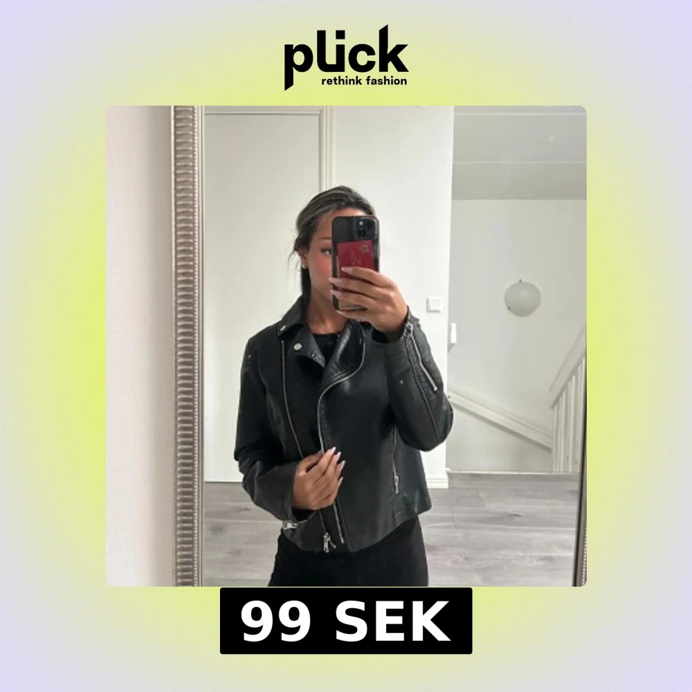Snygg svart skinnjacka med klassisk bikerstil och silvriga dragkedjor. Jackan har bred krage, snedställd dragkedja framtill och detaljer vid axlarna. Perfekt för dig som vill ha en cool och tidlös look.