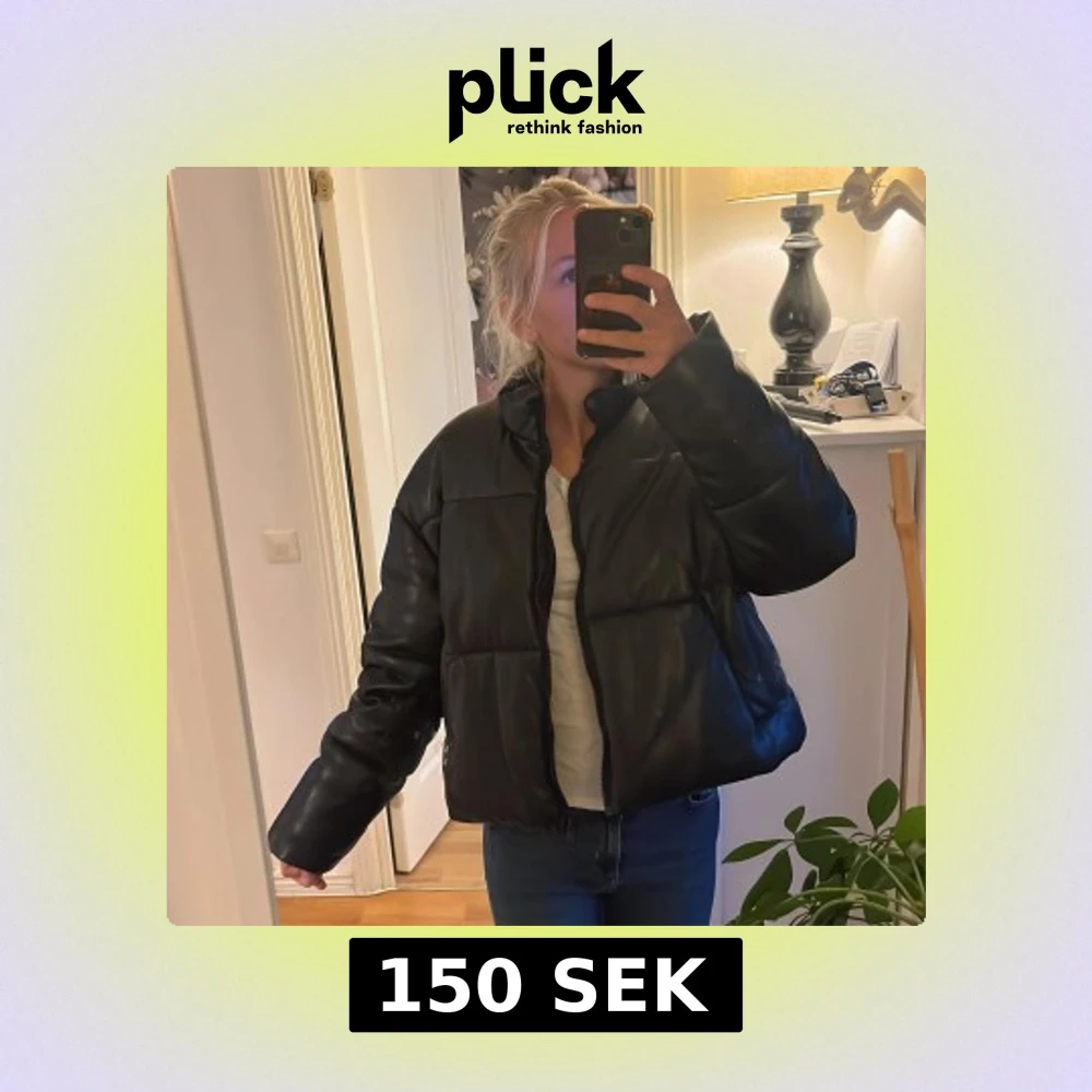 Svart pufferjacka i skinnimitation