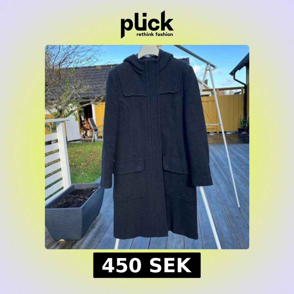 Snygg mörkgrå kappa från Lindex i storlek 40. Modellen har huva, stora fickor framtill och stängs med både dragkedja och knappar. Tillverkad i ullblandning, perfekt för kyliga dagar. Stilren och enkel design som funkar till många olika looks.