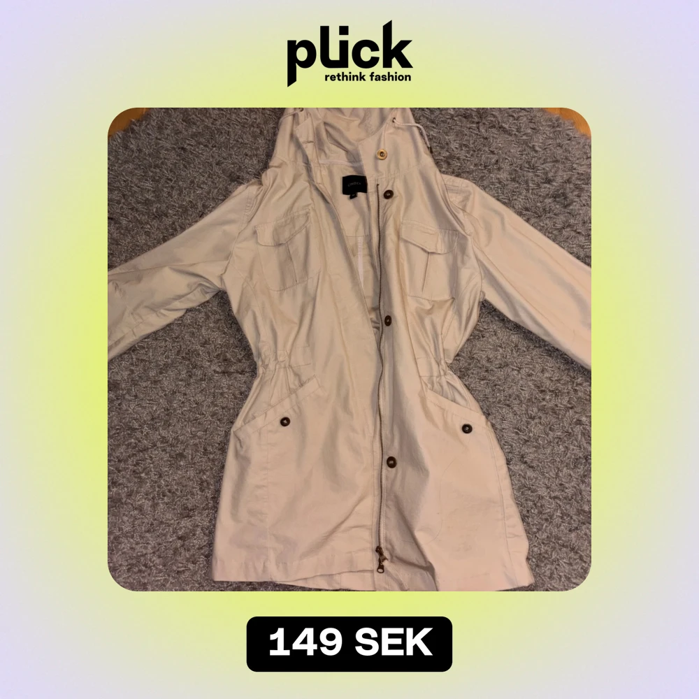 Snygg beige kappa från Lindex i mycket bra skick. Väldigt justerbar midja och passar perfekt till mig med storlek Xs som en lite större jacka.