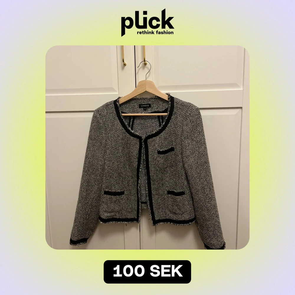 Säljer en svartvit kavaj från Lindex i storlek 42. Den har en tweed-look. Kavajen är i mycket bra skick. Storlek 42 men skulle säga att den passar 38/40/42.