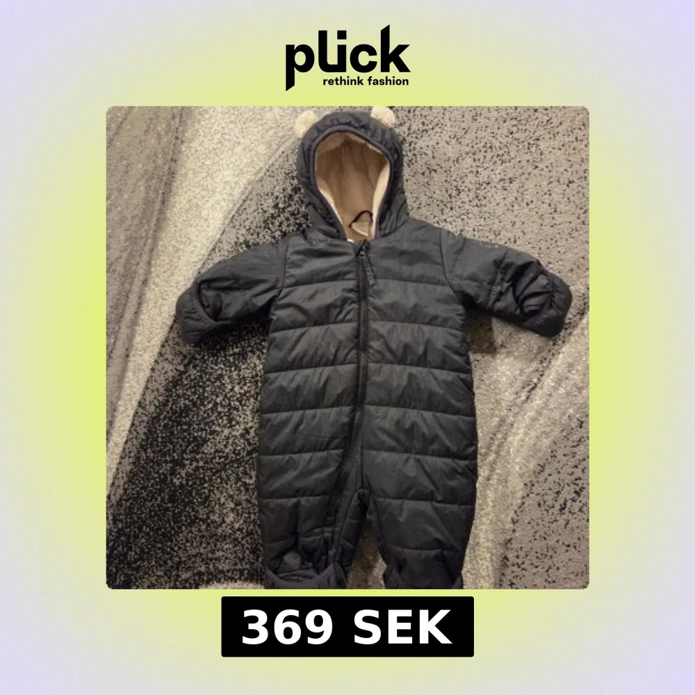 Mysig svart overall från Lindex Baby med quiltad utsida och fluffigt beige teddyfoder. Overall med huva och söta öron, dragkedja som går snett över framsidan och långa ärmar. Perfekt för kalla dagar!