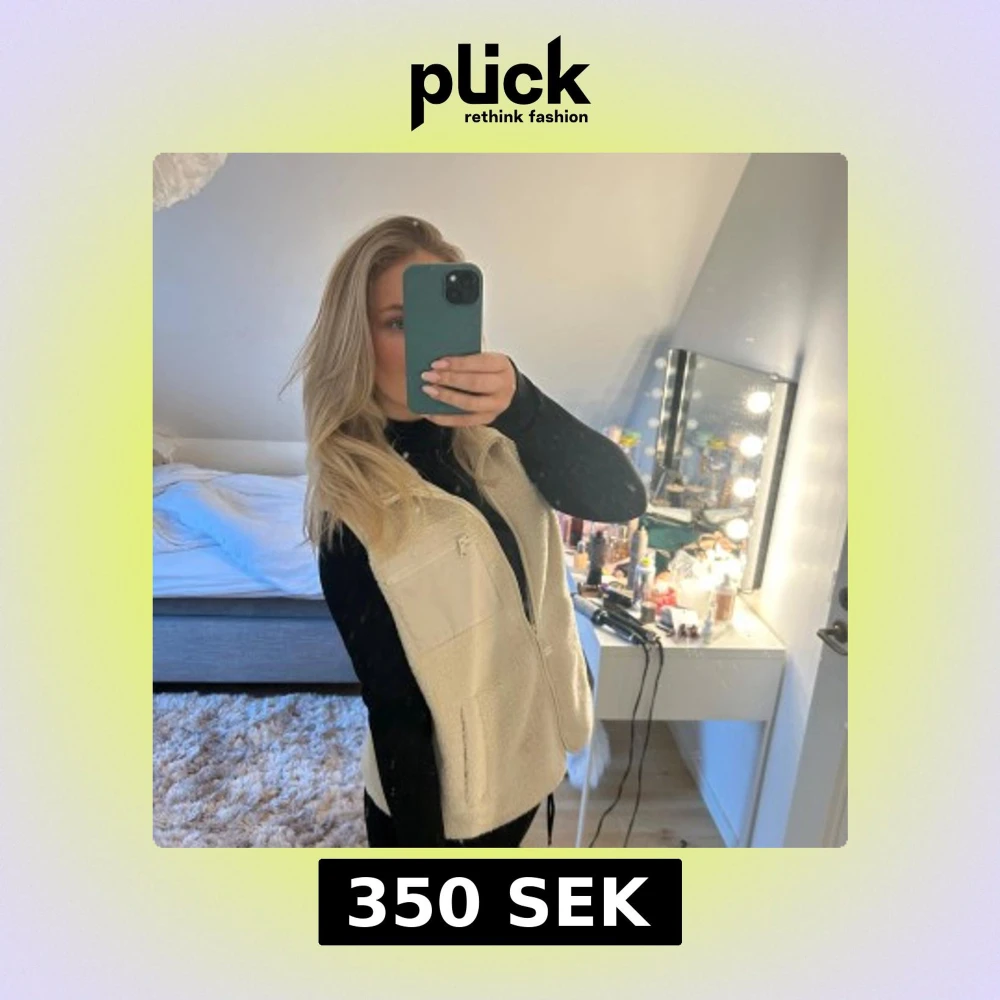 Mysig beige fleeceväst med dragkedja framtill och tre fickor, varav en med dragkedja. Perfekt att slänga över en långärmad tröja för extra värme. Enkel och stilren design.