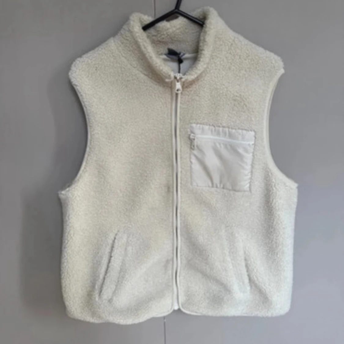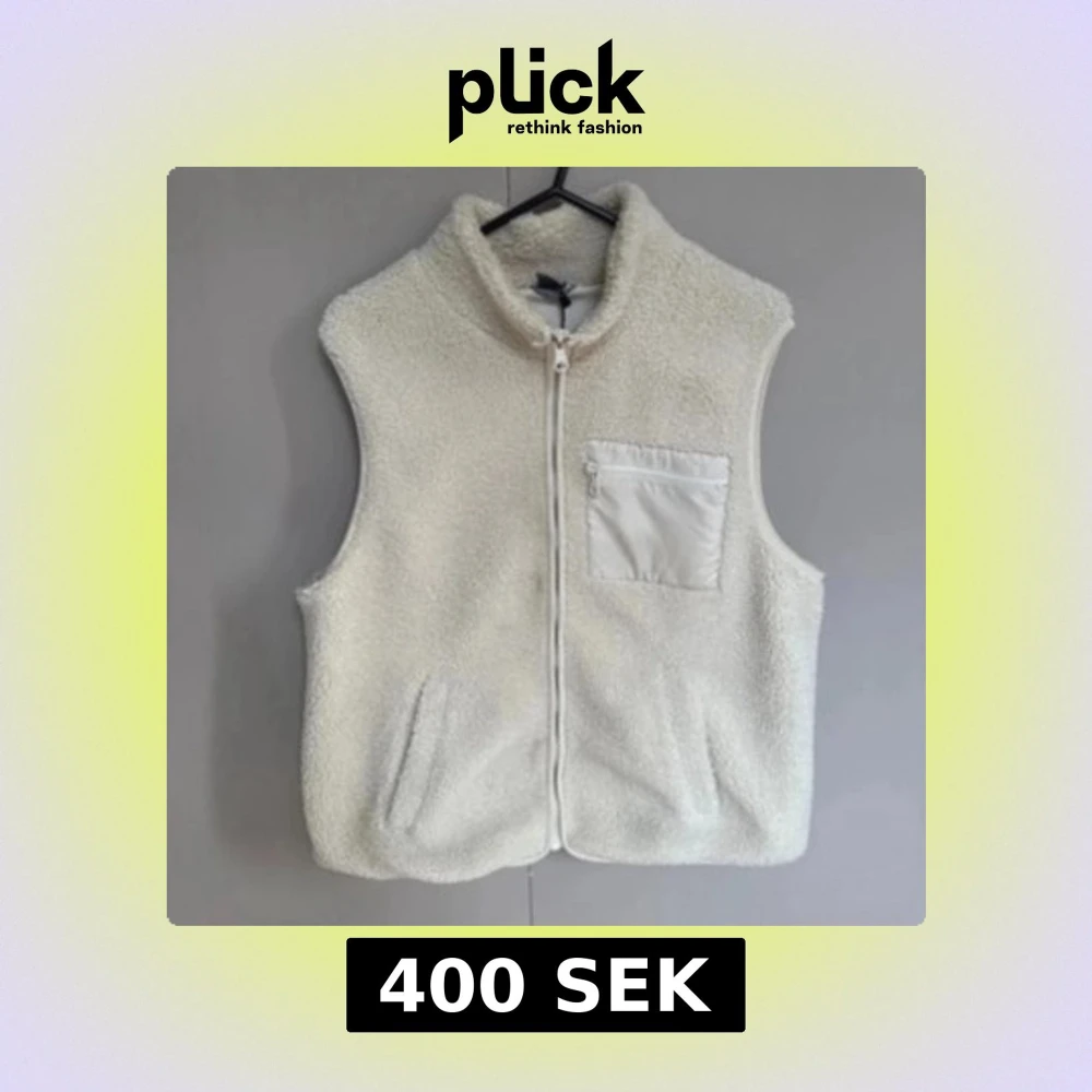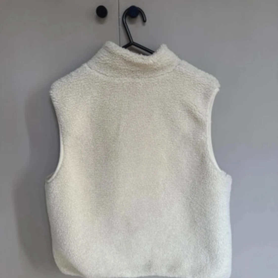 Mysig vit fleeceväst med hög krage och hel dragkedja framtill. Från Lindex