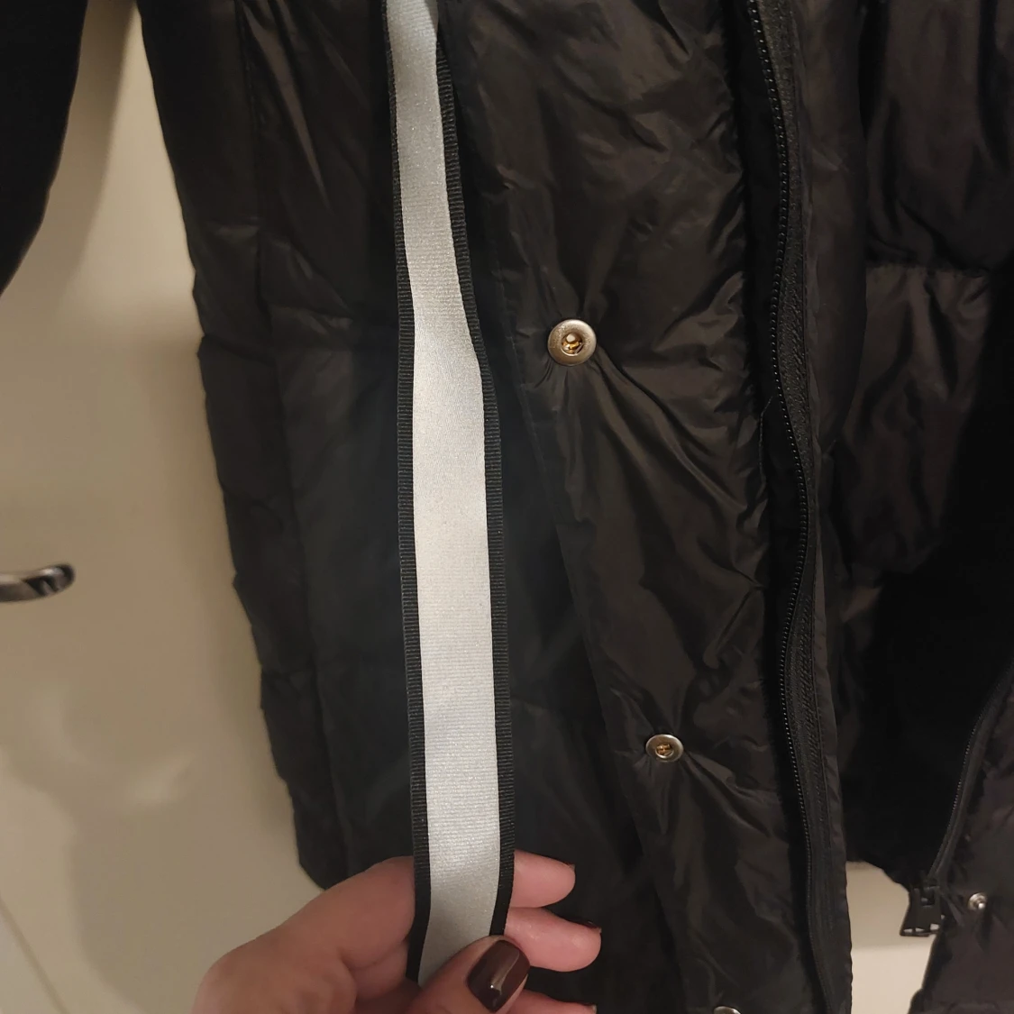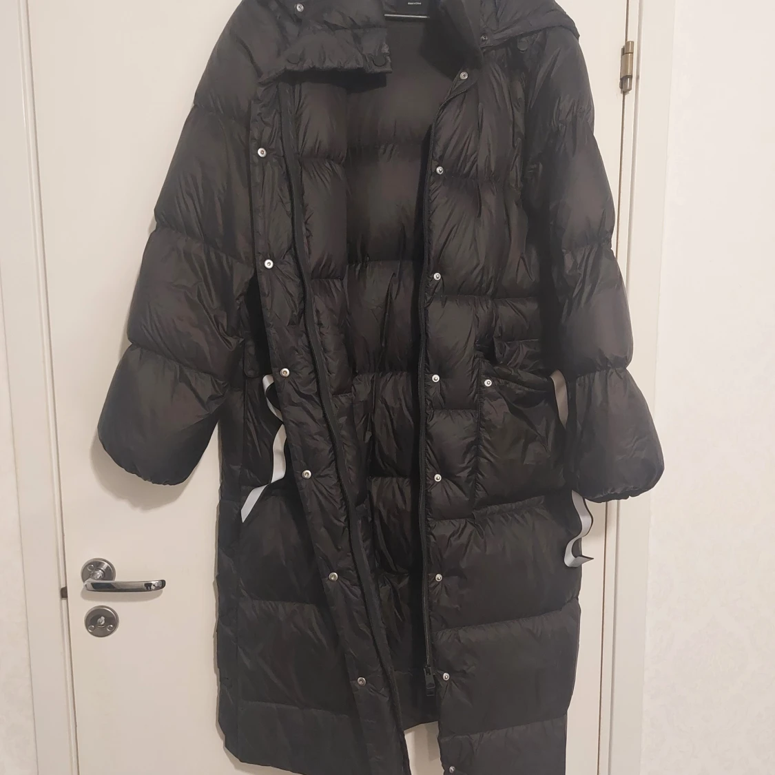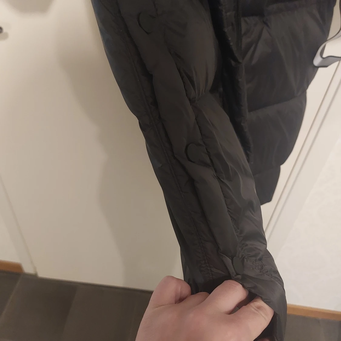 Säljer en svart lång pufferjacka med huva och dragkedja. Jackan har quiltad design, långa ärmar och reflexdetaljer på insidan. Perfekt för kalla dagar och riktigt skön att bära. Stängs med både dragkedja och knappar.Helt ny.Har tagit bort ettiket.