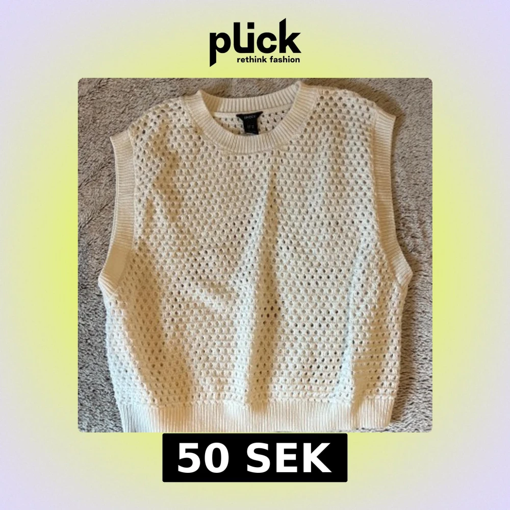 Vit stickad väst från Lindex med ett öppet, luftigt mönster. Storlek xl