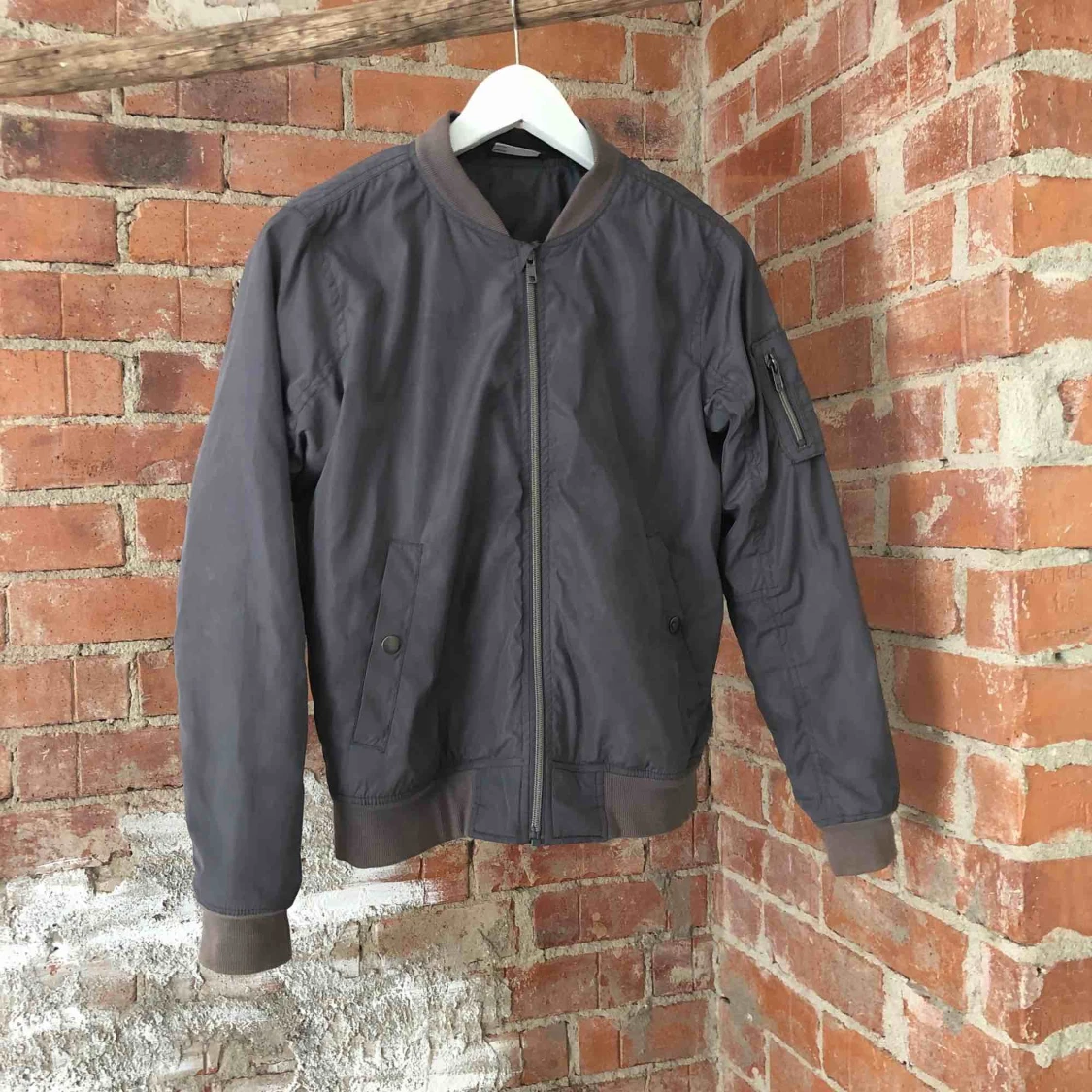 En grå bomberjacka från Lindex. Köp för ca 3 år sedan använd men behövs bara putsas upp lite så är den som ny.