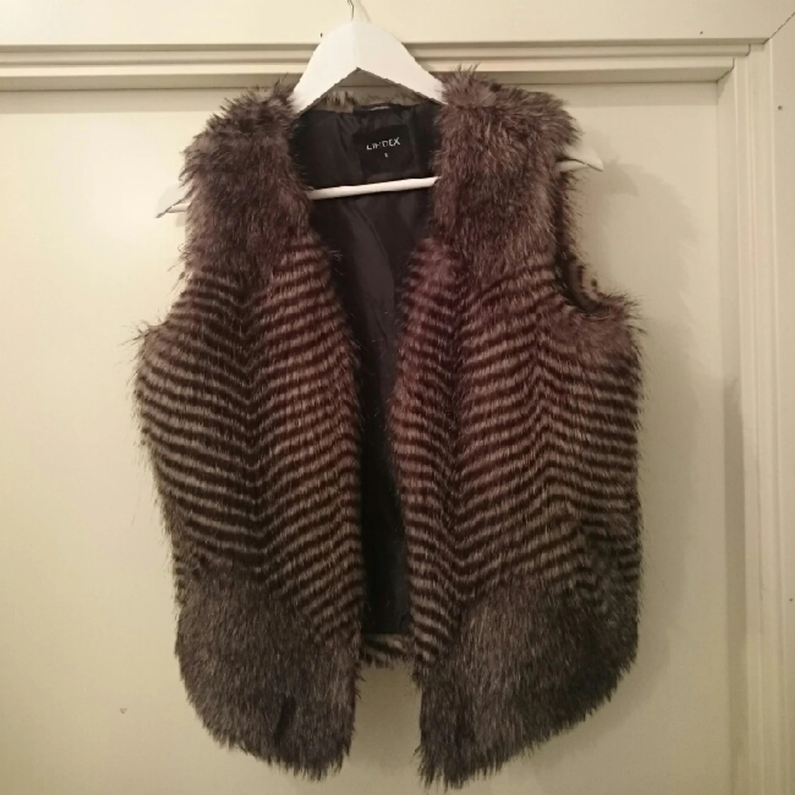Väst i naturtroget fuskskinn, bara använd ett fåtal gånger. Fin att ha till en tröja eller utanpå jackan.