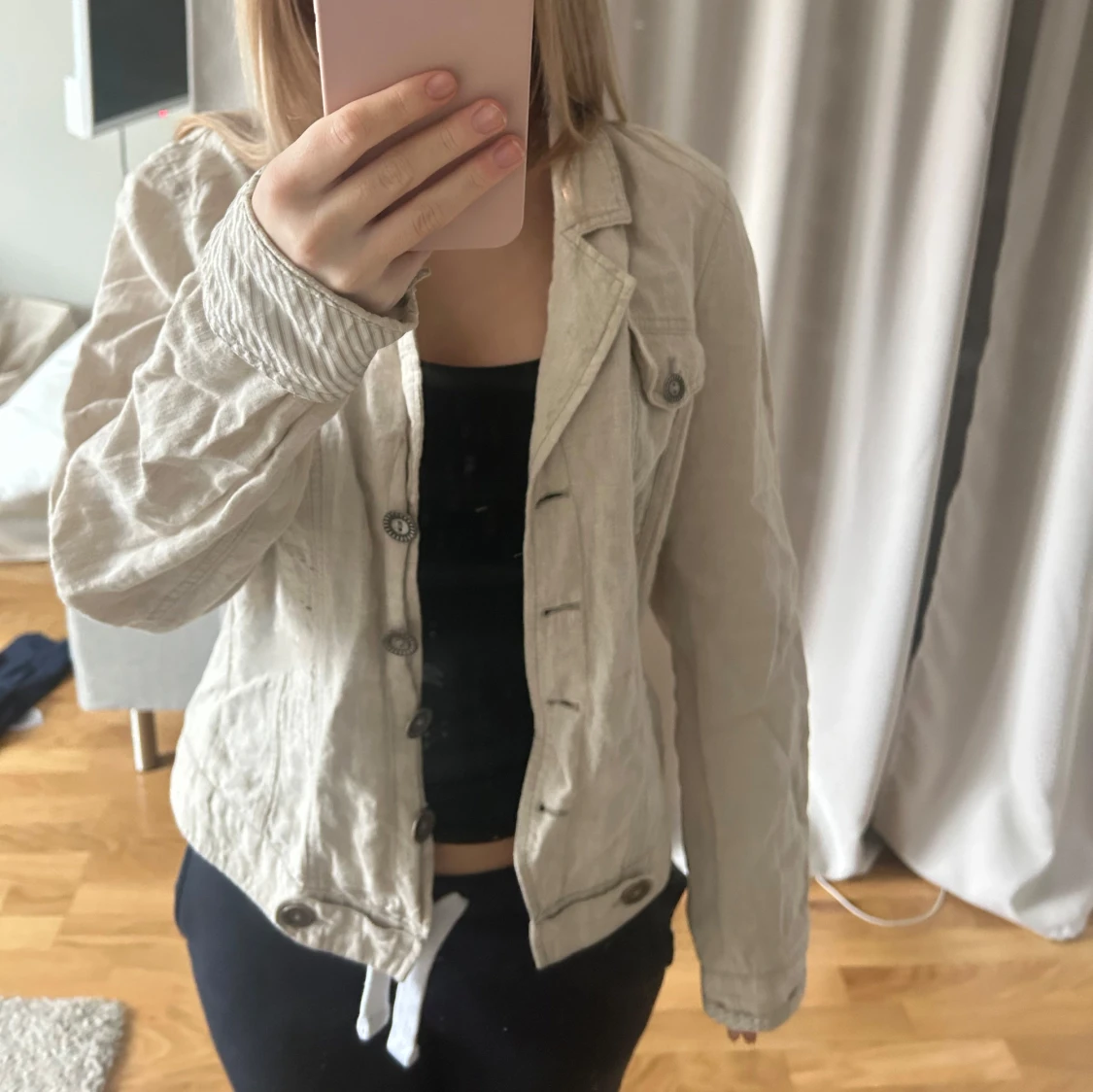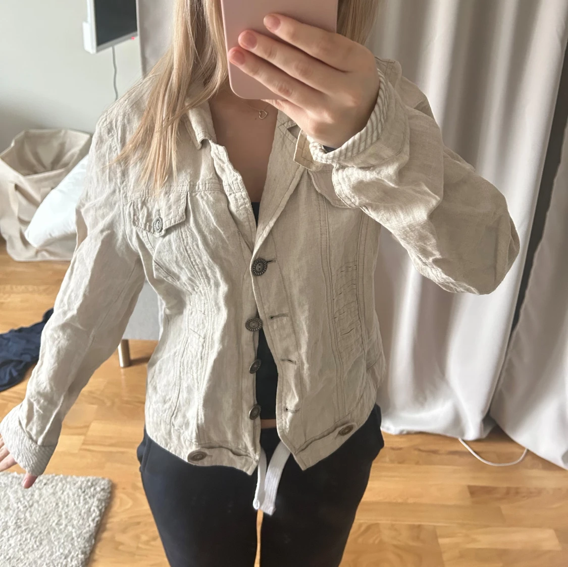 Såå fin Linne jacka!! Jag har klippt bort axel vaddering ( se bild ) men hur fin som hälsat utan!! 100%linne 💞
