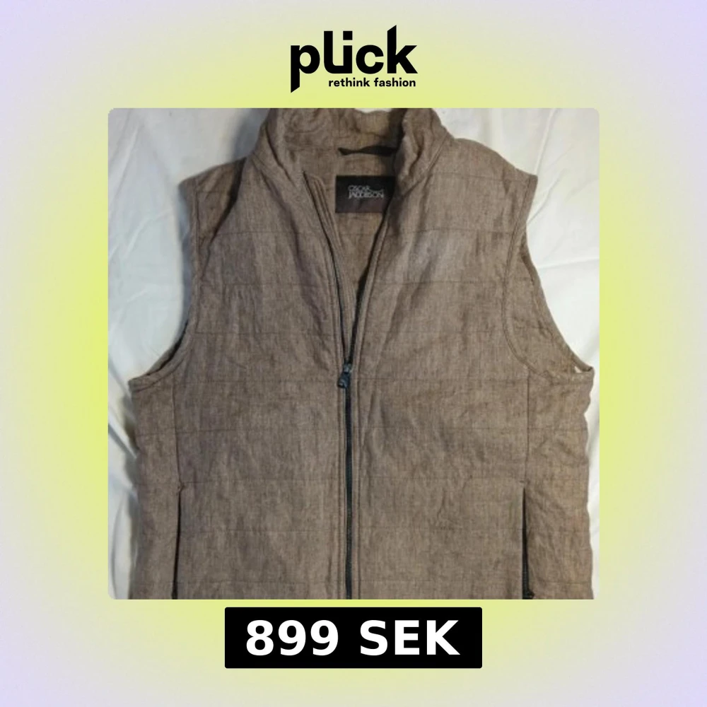 Stilren beige väst från Oscar Jacobson med dragkedja framtill och hög krage. Västen är tillverkad i 100% linne och har en otroligt go passform. Den är perfekt nu i vår & sommar och till att matcha med olika outfits. Storleken är 52 vilket motsvarar runt L. Skicket är bra men lite missfärgning på ett ställe men absolut inget man lägger märke till. Vid fler frågor om bilder eller annat, hör bara av er!