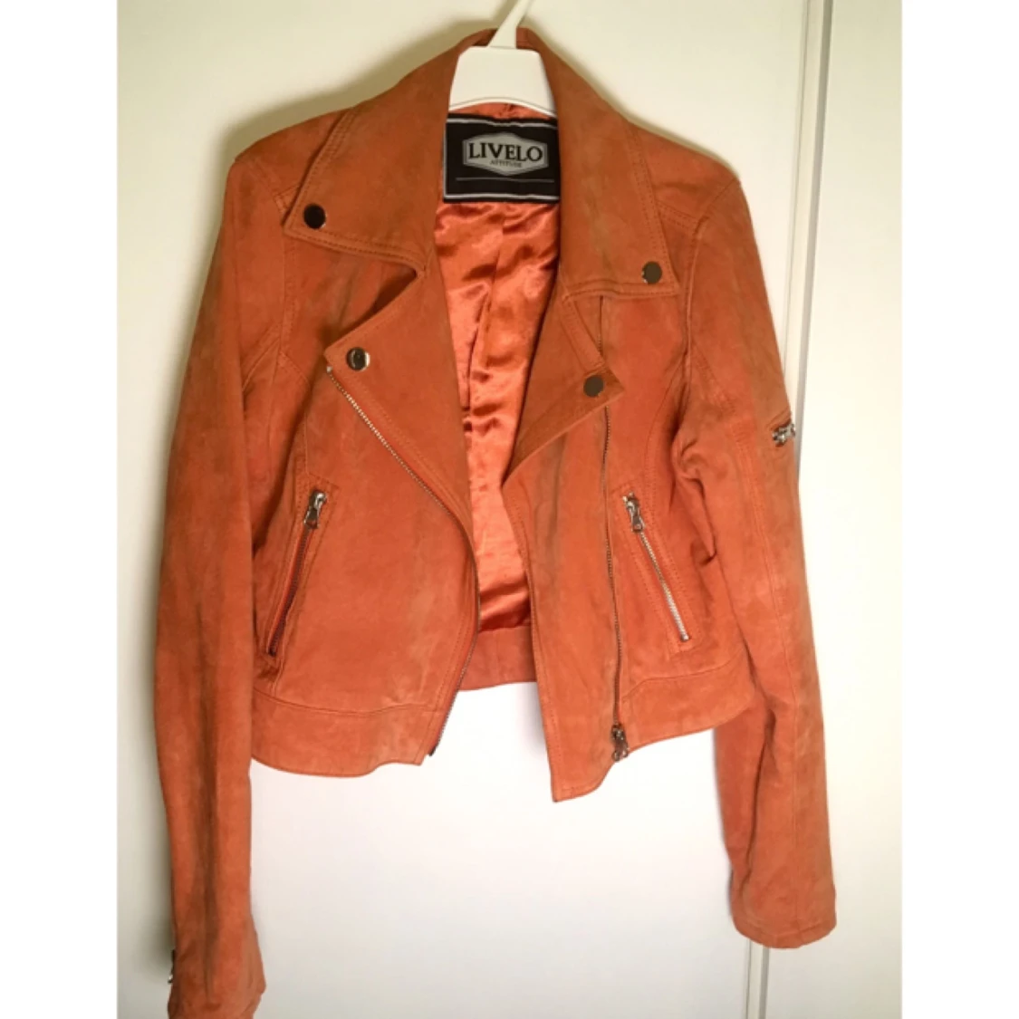 Mockajacka i härlig orange färg! Jackan är i nyskick och har endast burits inomhus. Storleken är oklar då lappen verkar ha mystiskt försvunnit men jag brukar ha storlek S eller 36 i kläder och den är i tightaste laget för mig. Vill du bära den öppen som en sommarjacka fungerar det ännu bättre. Armlängd ca 60cm. Portot betalas av köparen.