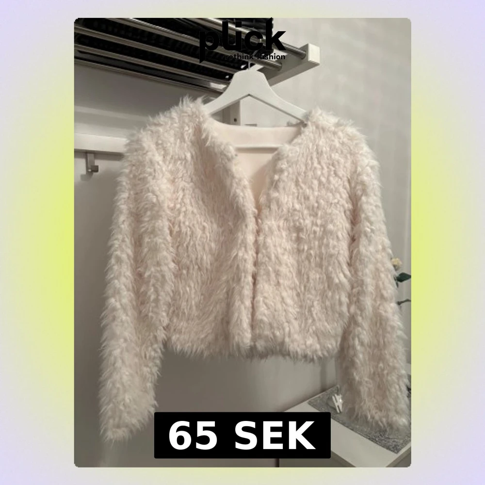 Säljer en supermjuk och fluffig ljus pälsjacka med lång ärm och croppad passform köpt på Lindex.Jackan har en stilren look finns häktor på insidan så den går att knäppa.Den är perfekt för dig som vill sticka ut med en cozy vibe. Färgen är ljus och neutral, vilket gör den lätt att matcha.