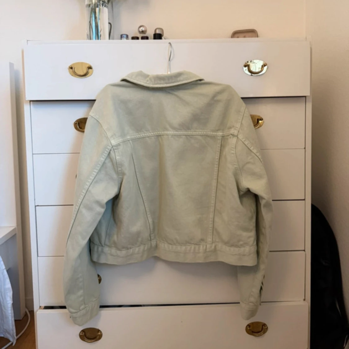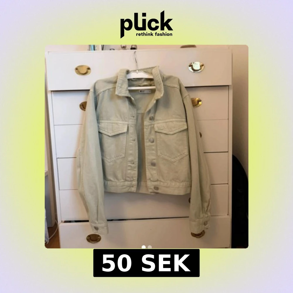 Säljer en ljusbeige jeansjacka från Gina Tricot. Jackan har klassisk krage, två stora bröstfickor med lock och knappar framtill. Modellen är croppad och har långa ärmar med knapp vid ärmslut. Perfekt för vår och sommar!