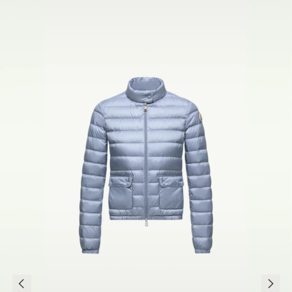 Säljer en snygg ljusblå dunjacka från Moncler med fickor där framme och hög krage. Den är i storlek S men passar även Xs och M skulle jag påstå. Nypris är ungefär 94000kr , bra skick 🥰