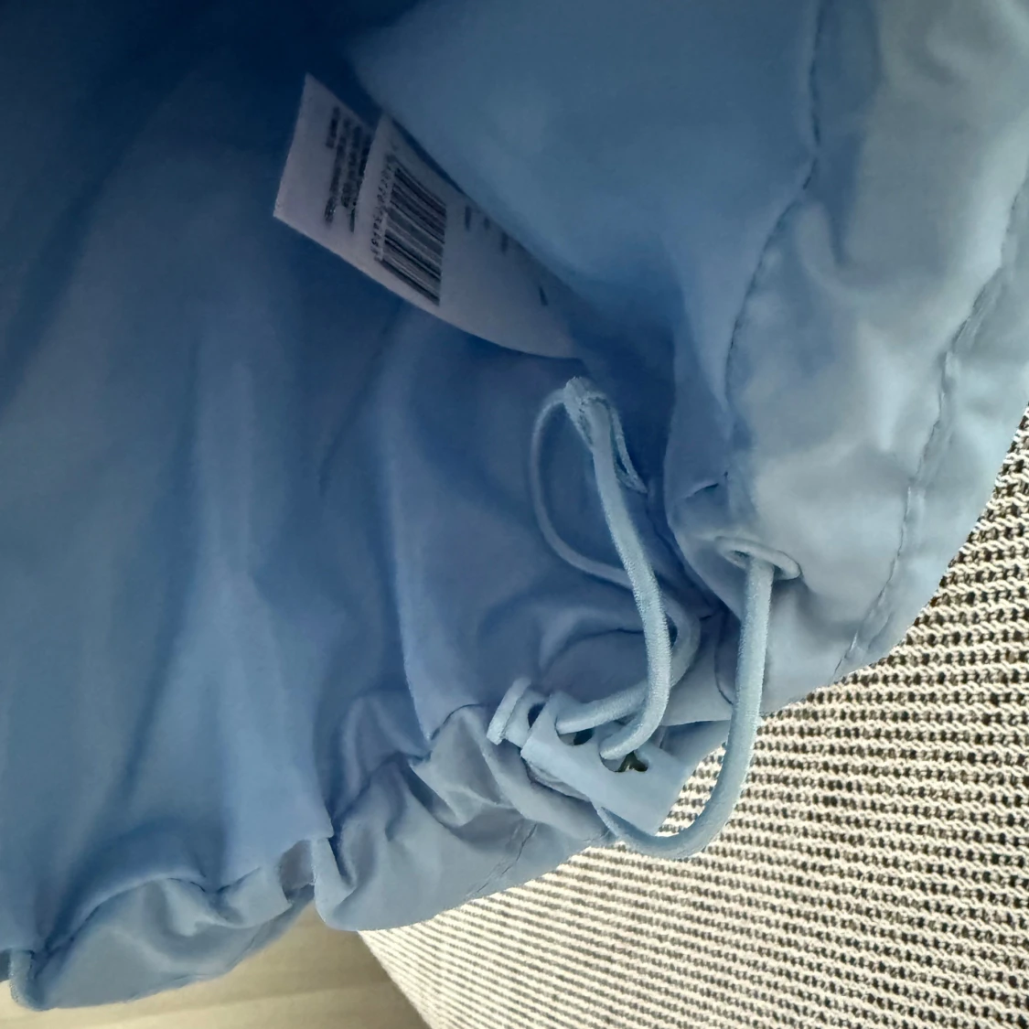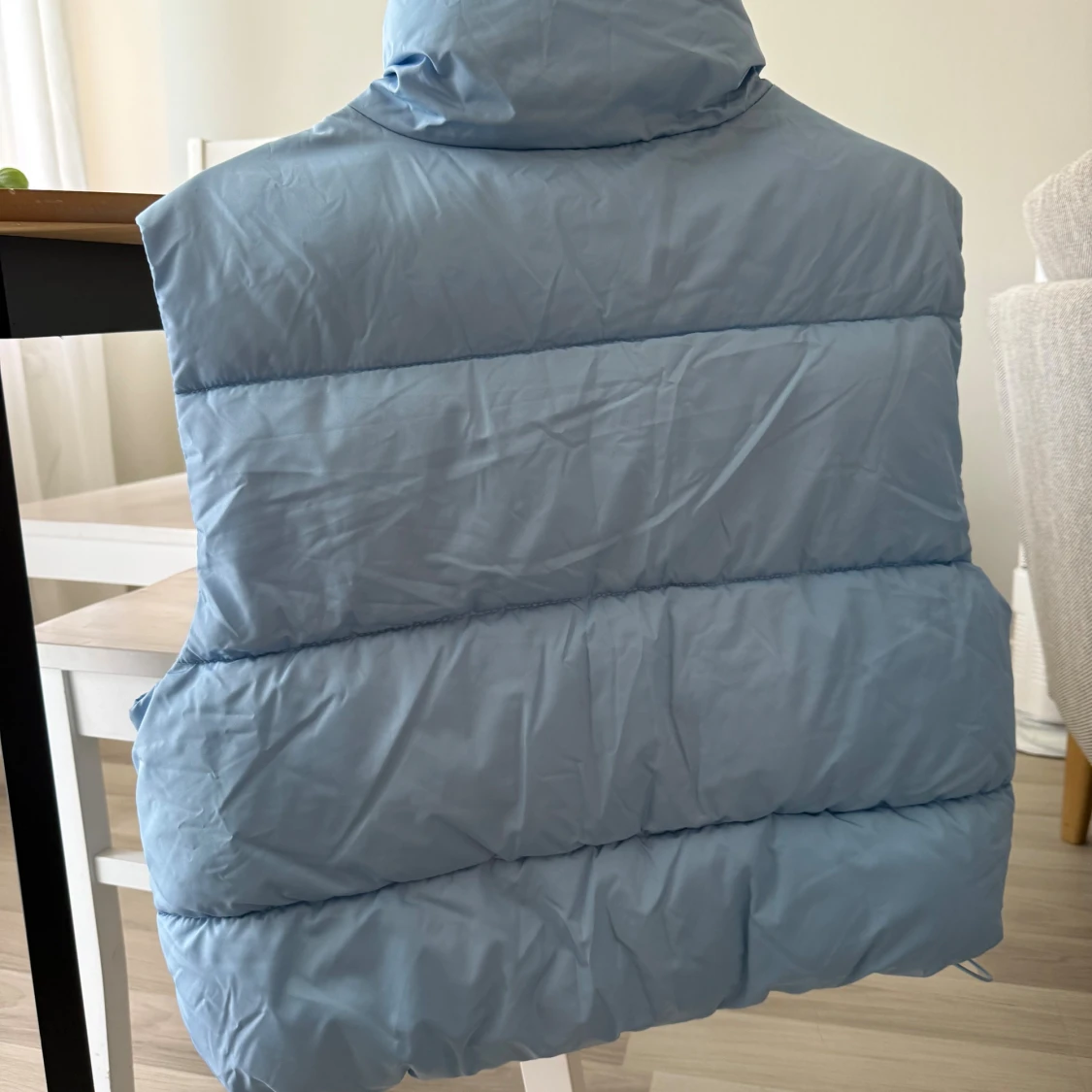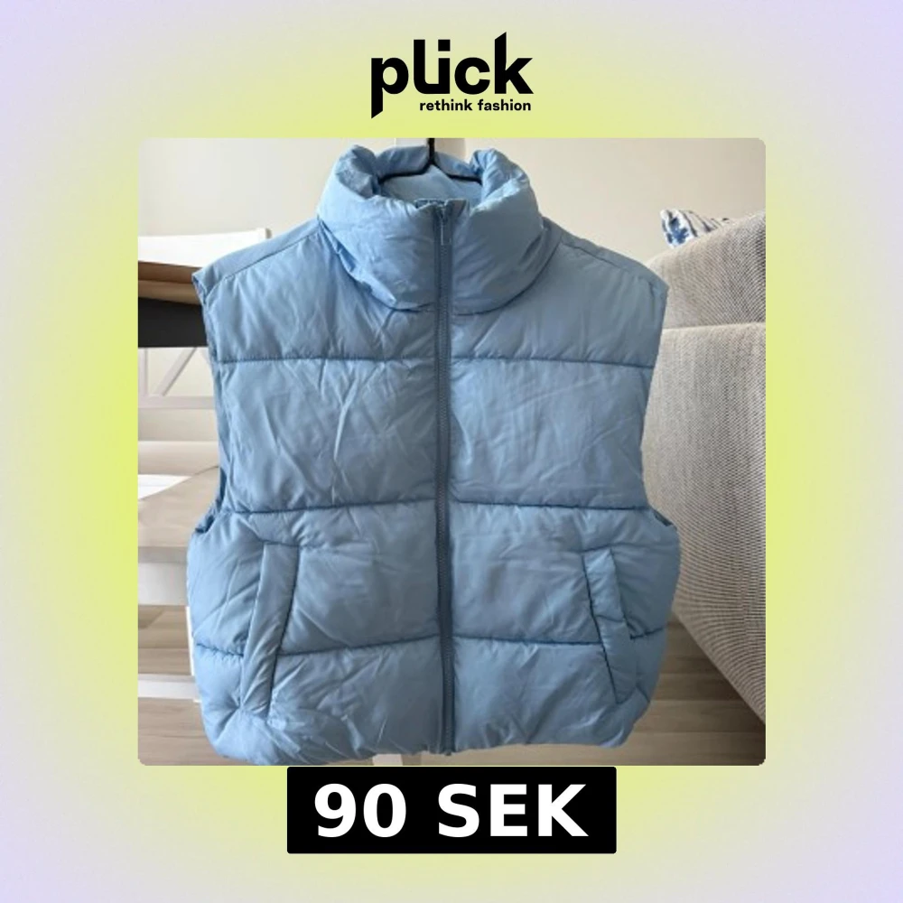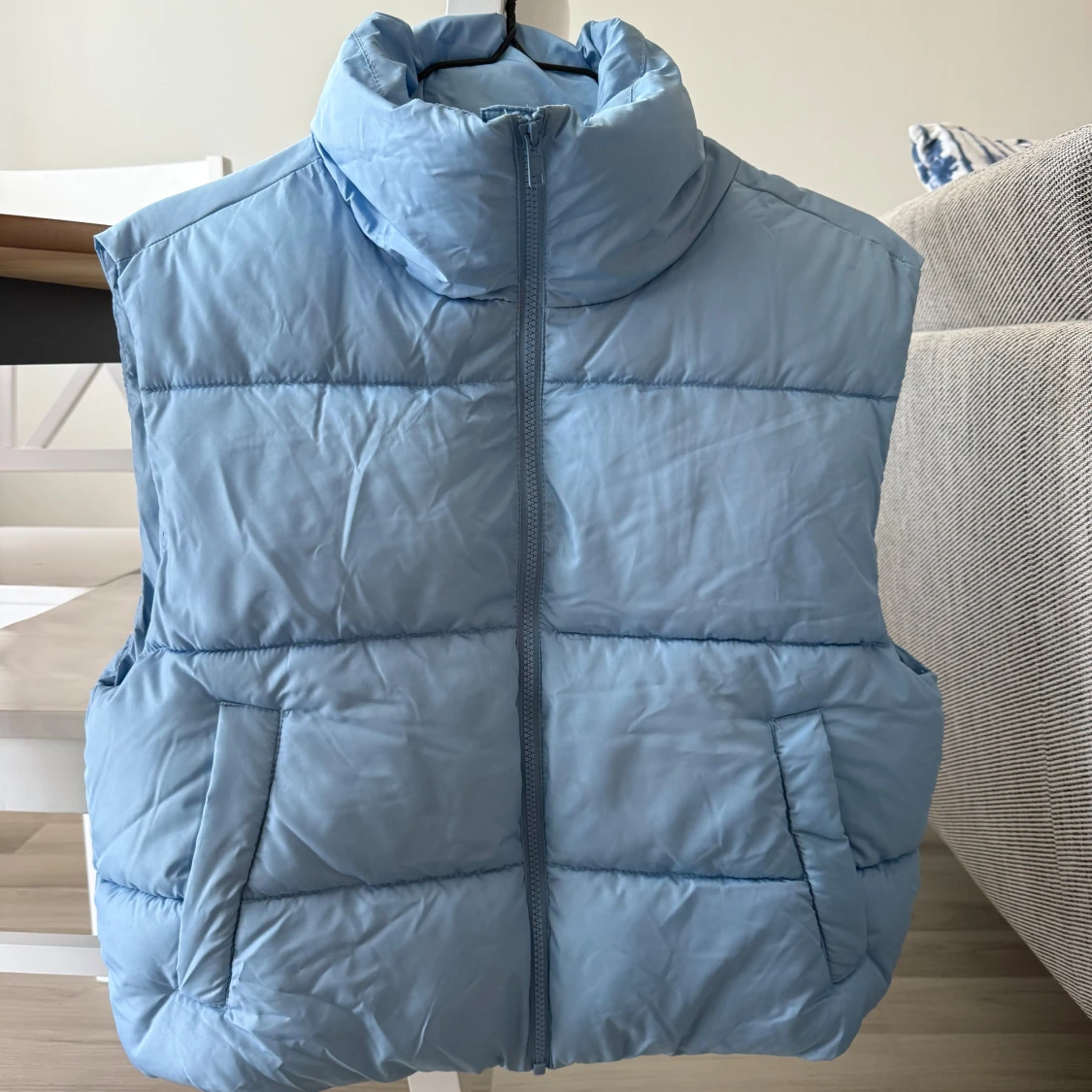Säljer en ny ljusblå väst från Bik Bok i storlek S. Västen har hög krage, dragkedja framtill, två fickor och justerbar snörning nedtill