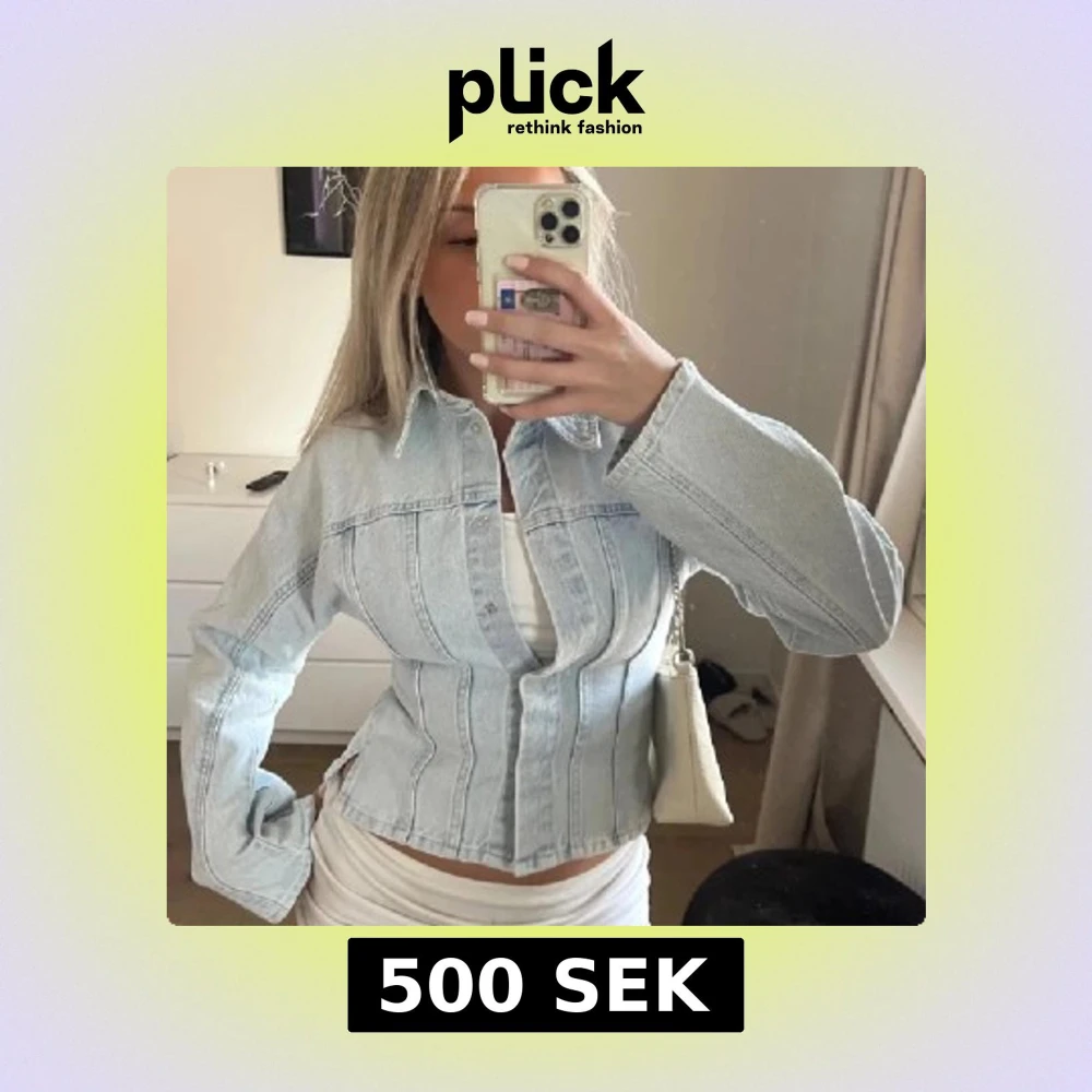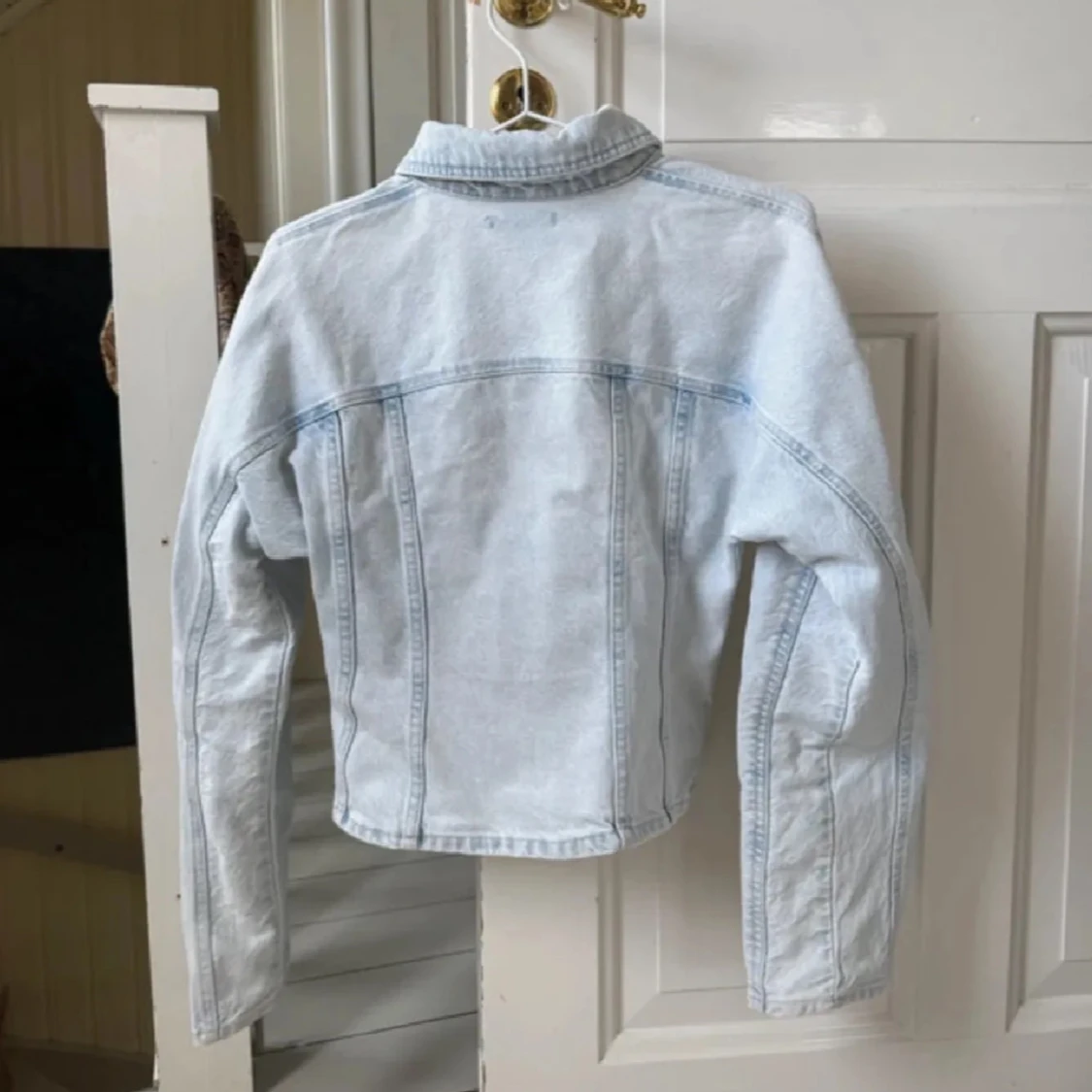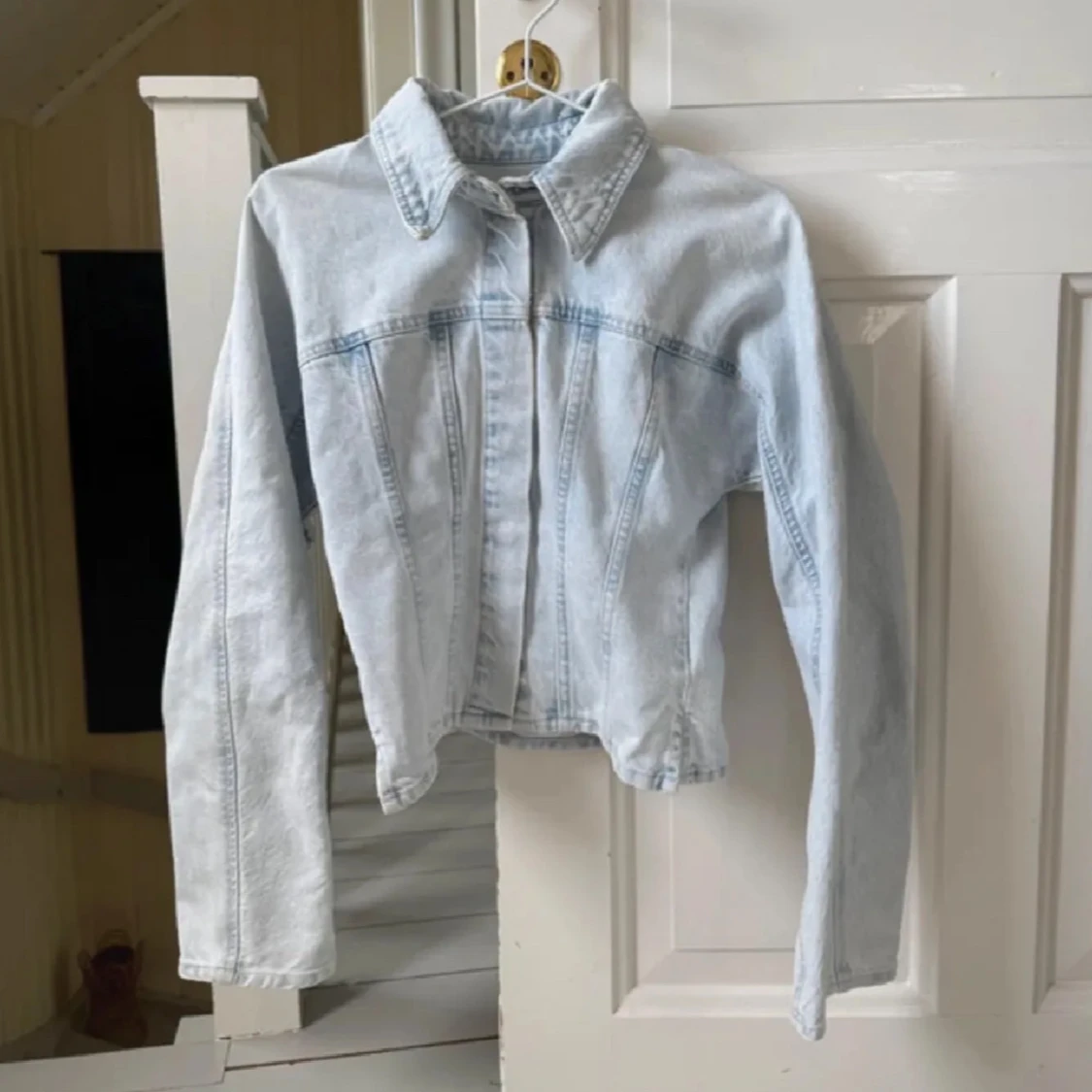 Säljer en ljusblå jeansjacka med markerade sömmar och klassisk krage. Jackan har lång ärm och knäppning framtill. Pruta gärna❣️