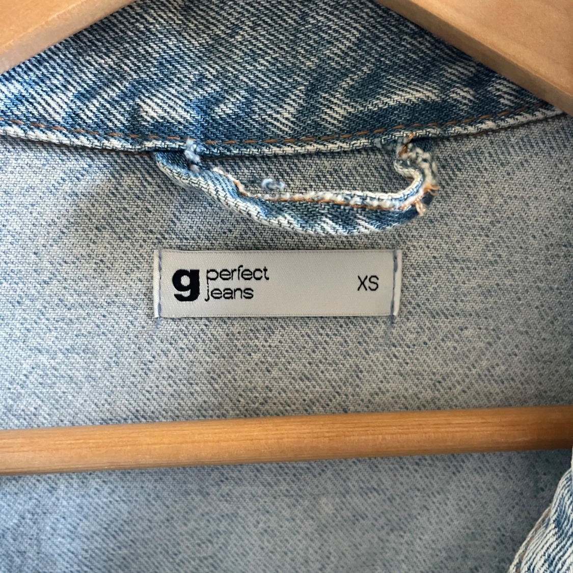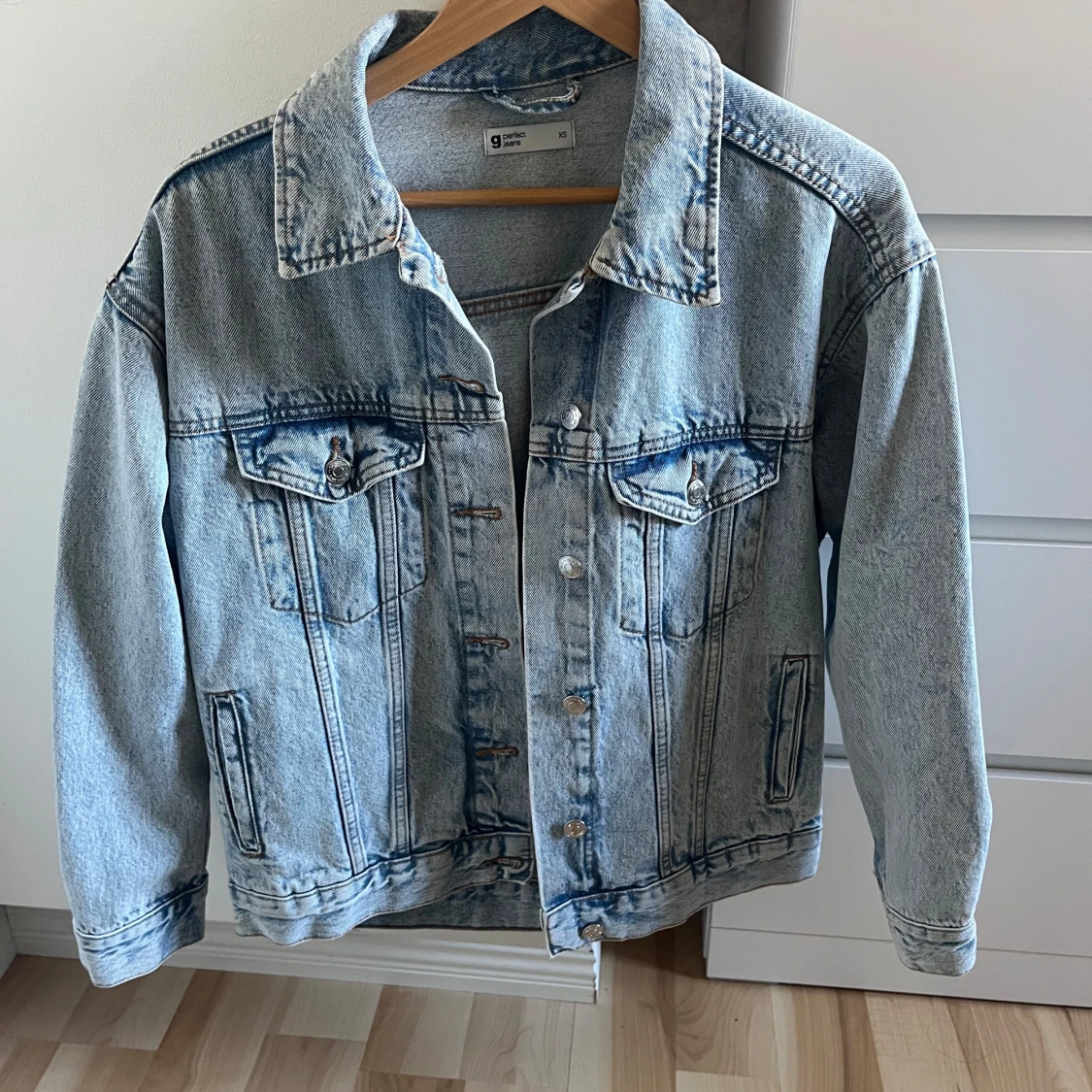 Säljer en klassisk ljusblå jeansjacka från Perfect Jeans Gina Tricot. Jackan har en normal passform med knappar framtill och två bröstfickor med lock. Perfekt för vår och sommar!