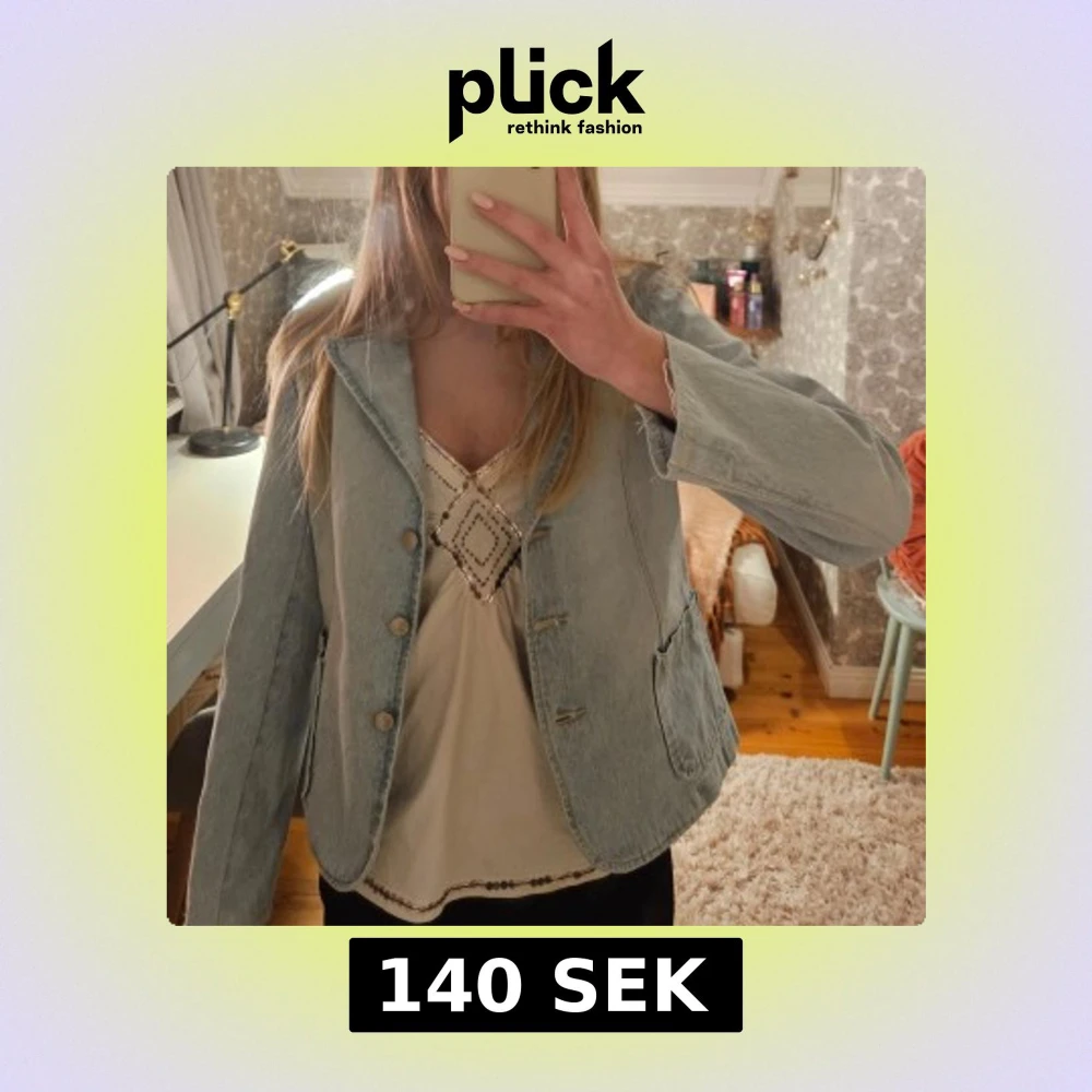 Snygg ljusblå jeansjacka från X-Mail med klassisk krage, tre knappar framtill och två framfickor.