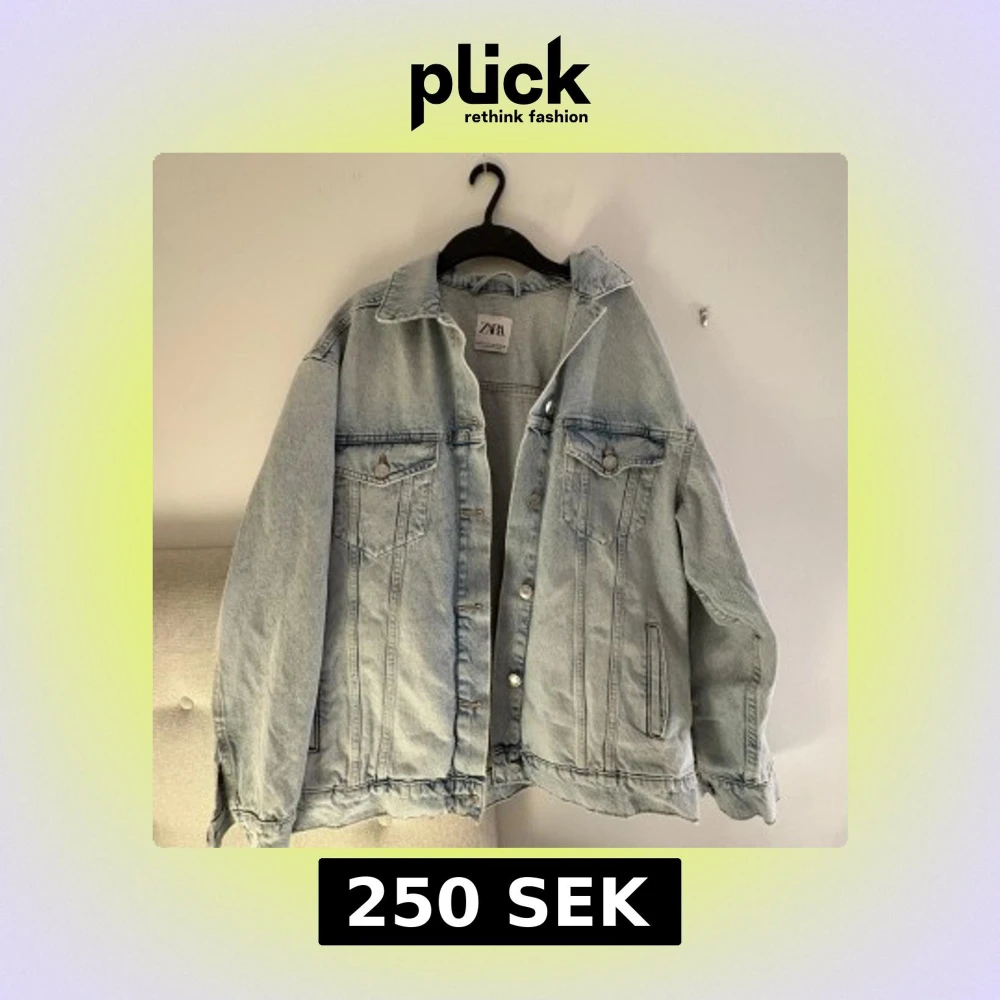 Säljer en ljusblå jeansjacka från Zara i oversized modell. Jackan har klassisk krage, knappar framtill och två bröstfickor med lock. Perfekt att slänga över en hoodie eller t-shirt för en chill look.