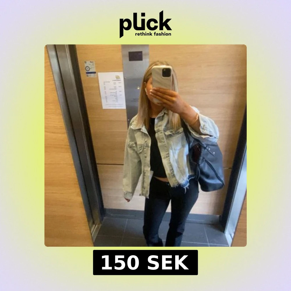 Säljer en ljusblå oversized jeansjacka med klassisk krage och knappar framtill. Jackan har två bröstfickor med lock och en rå, fransig nederkant för en trendig look. Perfekt att slänga över en t-shirt eller hoodie.